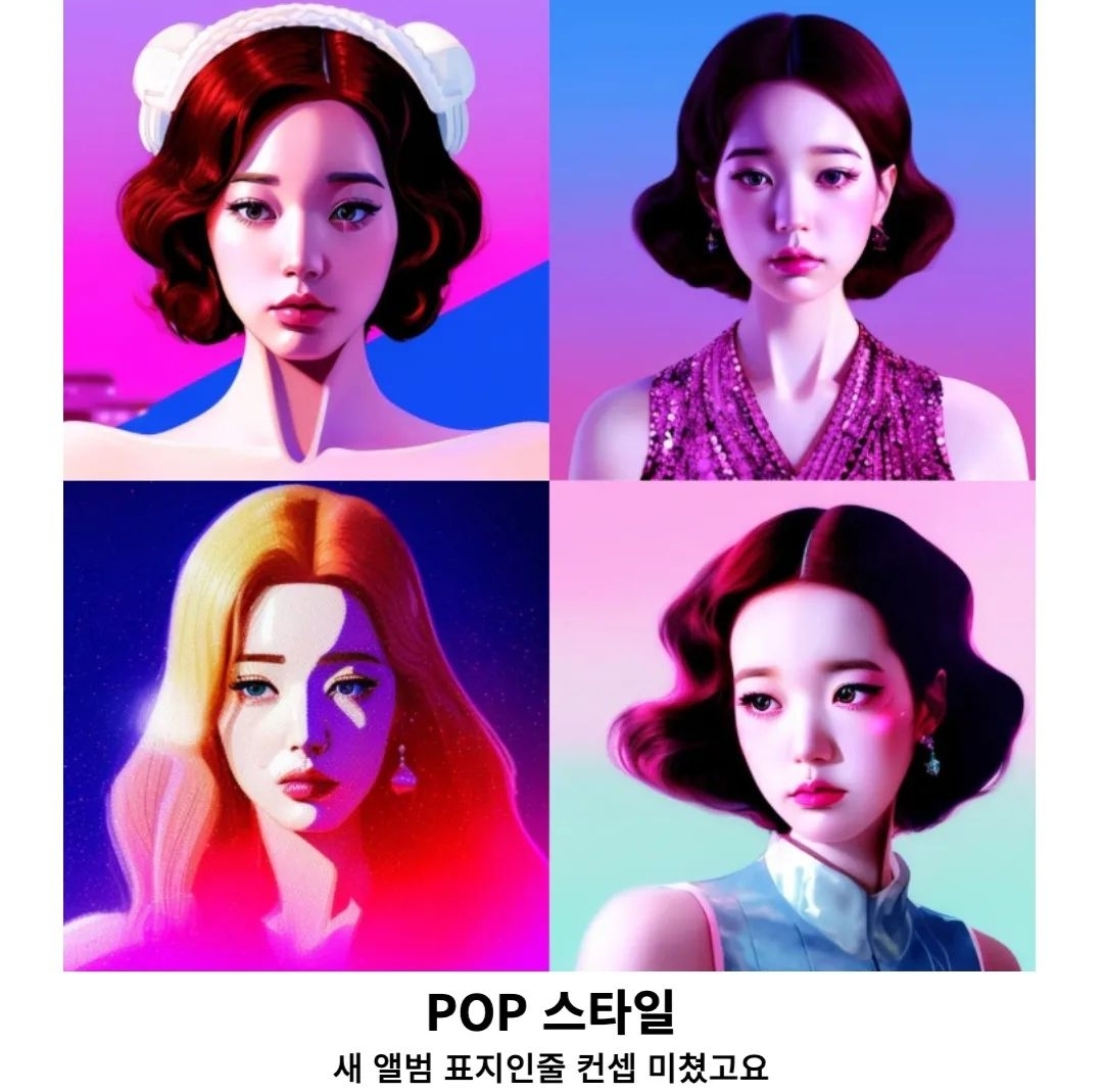 POP스타일은 에스파의 뮤비 속 AI들과 같은 느낌으로 결과물을 준다.