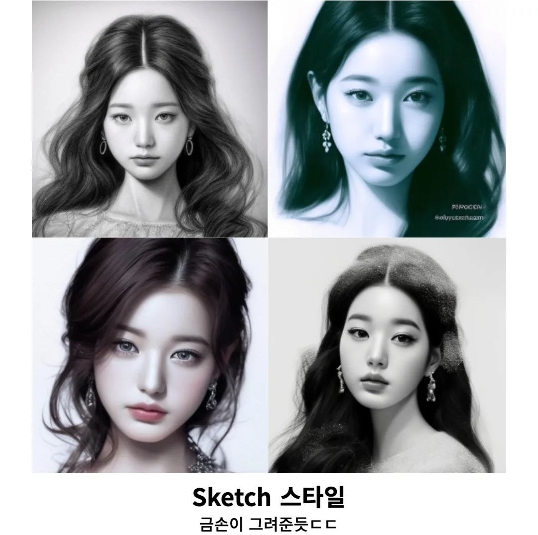 스케치 스타일은 손으로 그림을 그린 듯한 느낌의 결과물이 나타난다. 개인적으로 과하지 않고 자랑하기 좋은 톤이라고 생각한다.