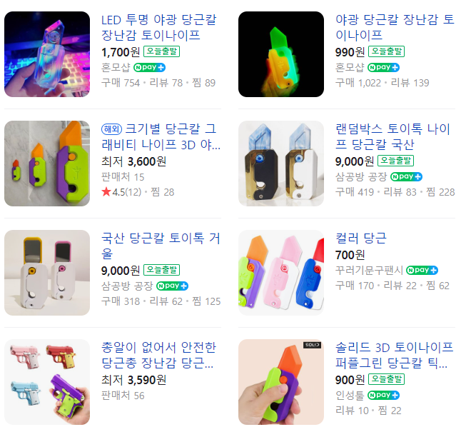 당근칼 파는 곳을 찾아보니 인터넷이랑 문방구에서 쉽게 구할 수 있다. 어떻게 보면 어릴 때 전기 찌리리 하던 그 장난감과 같이 위험한 아이템이라 생각한다.