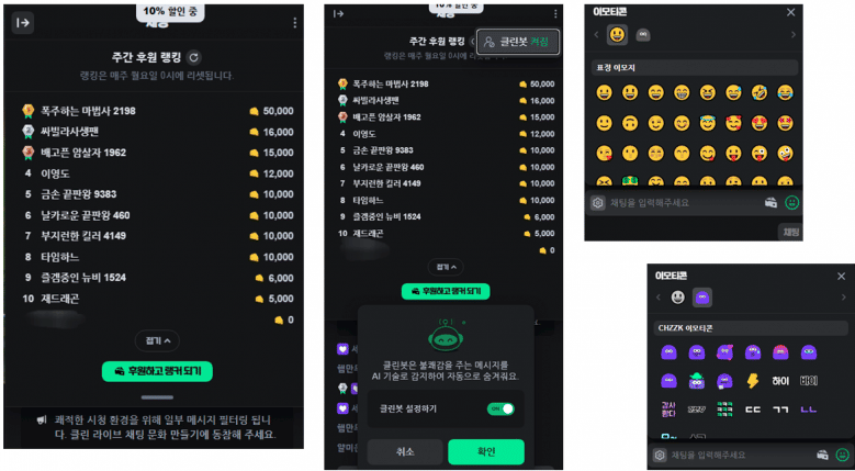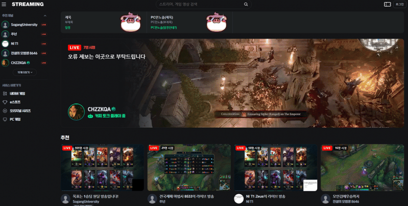 UI는 트위치랑 거의 비슷한 수준 (녹두로, 인간젤리, 울프, 옥냥이, 서새봄, 쉐리)