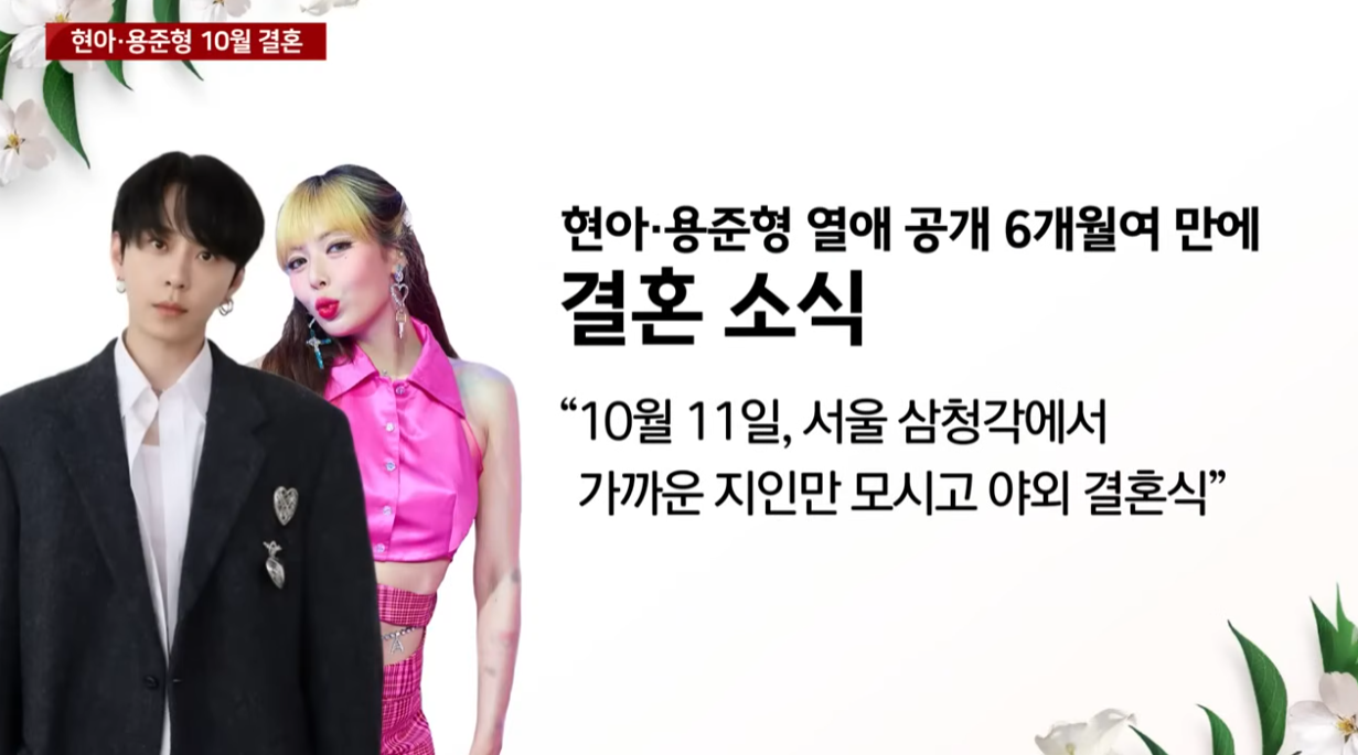 소속사 앳에어리어는 "현아와 용준형이 서로에게 큰 위안이 되어주며 사랑의 결실을 맺고 결혼을 약속했다"고 전했습니다. 또한, 오는 10월 가까운 지인들만 초대해 조용히 예식을 치를 예정이며, 현아의 앞날에 많은 축복을 부탁드린다고 밝혔습니다. 이로써 현아의 결혼은 공식적으로 확정되었습니다.