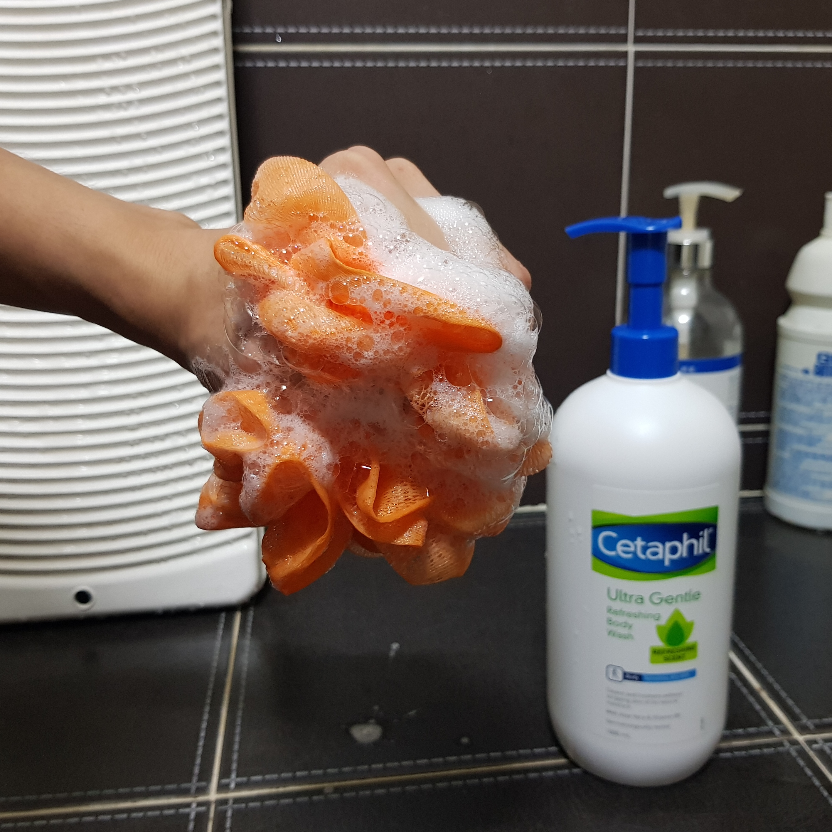 물을 아주 약간만 묻히고 바디워시를 비비니, 거품이 조금만 나더라구요.
