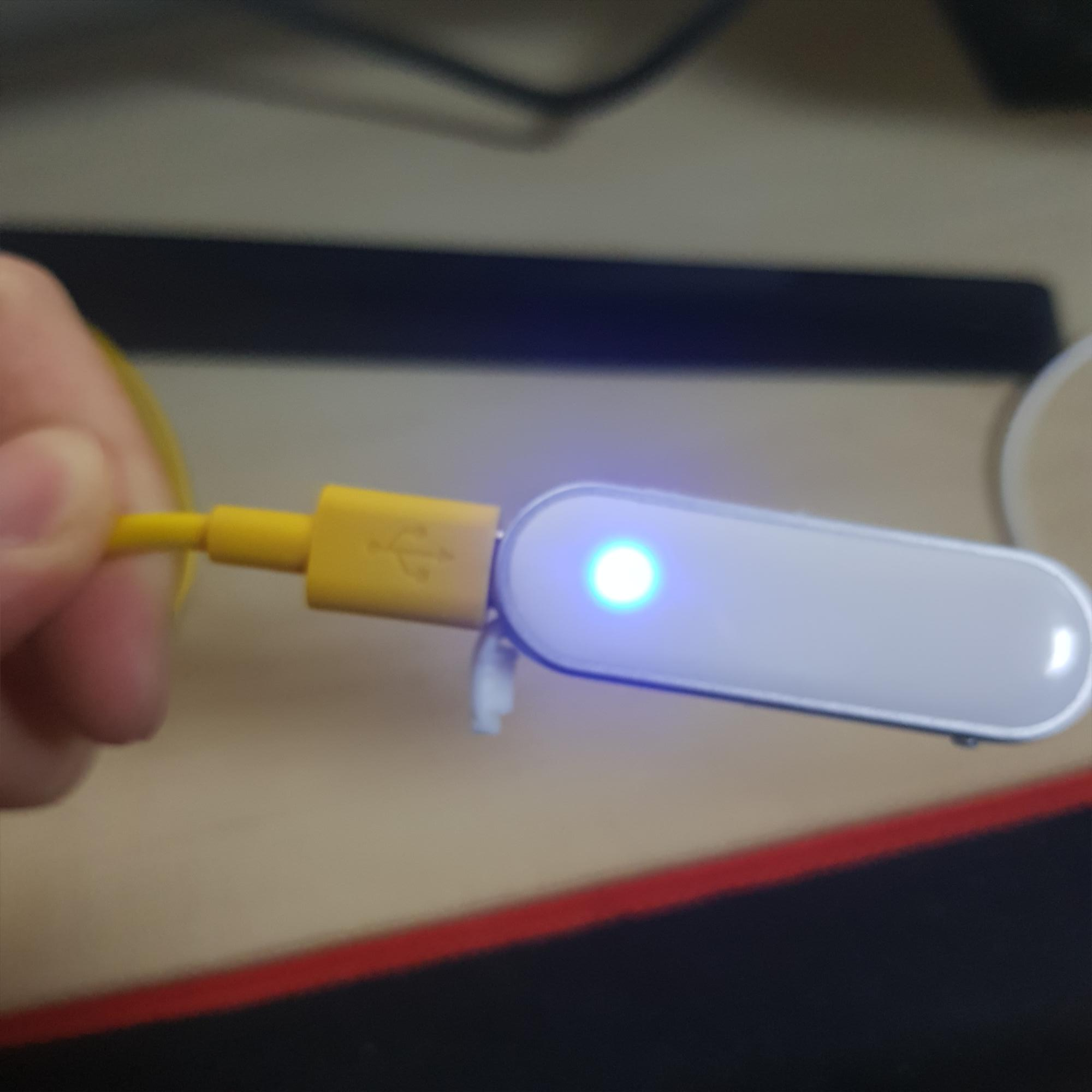 충전하면 이렇게 불이들어옵니다. 빨강불빛일 땐 충전중이라는 뜻! 이렇게 파랑불빛인 땐 충전완료라는 뜻!