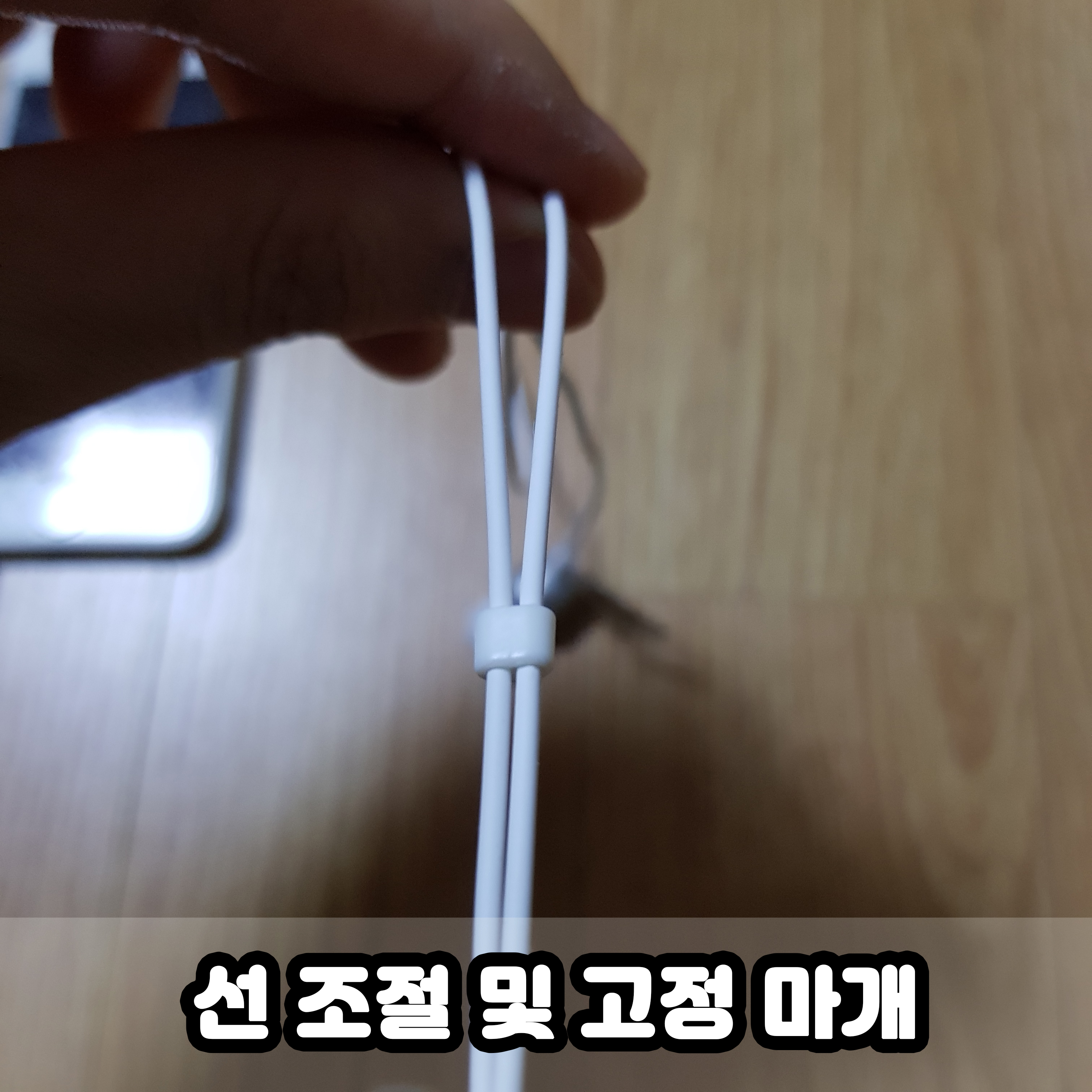 중간에는 선 고정용 마개가 있어서, 귀찮은 선을 정리할 수 있어요.