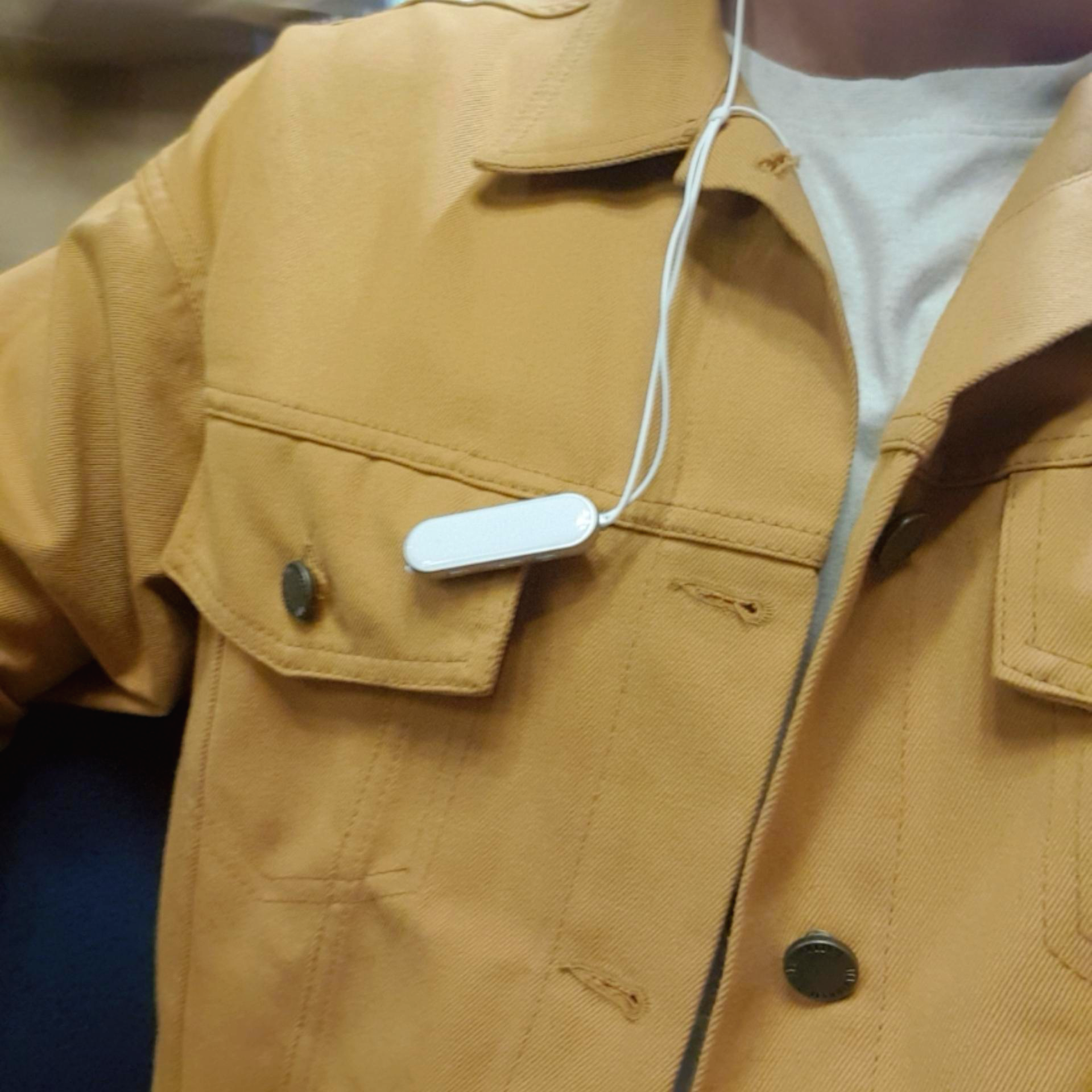 보통은 가슴쪽에 달아두는데요. 선 길이가 짧아서 여기 아니면 달아둘데 노노링!