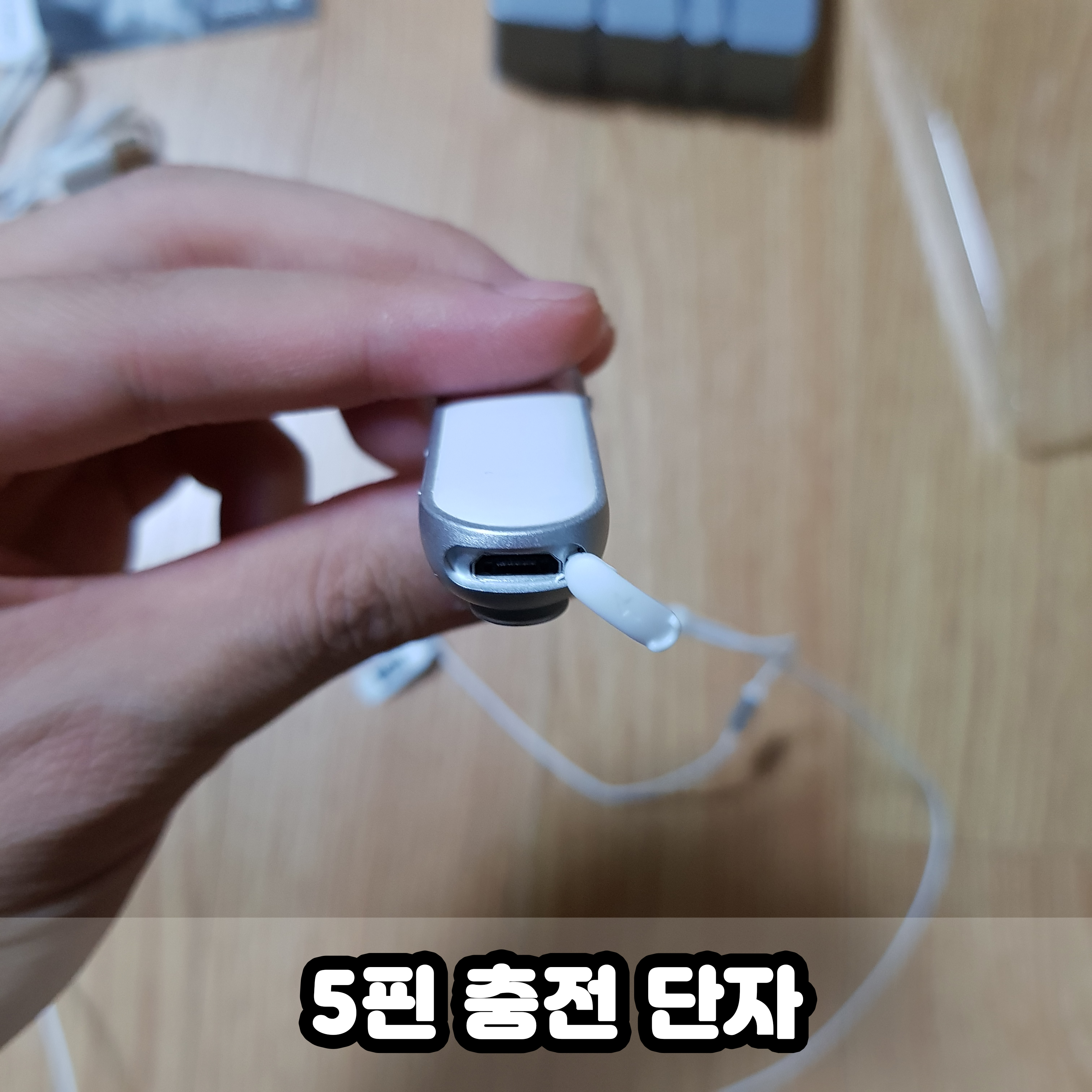 왜냐하면 5핀 케이블로 충전이 이뤄지거든요. 요즘 핸드폰들은 보통 8핀이나 C타입 케이블을 쓰는데, 얘는 아직 5핀이라서...따로 케이블 들고다니기 귀찮쓰