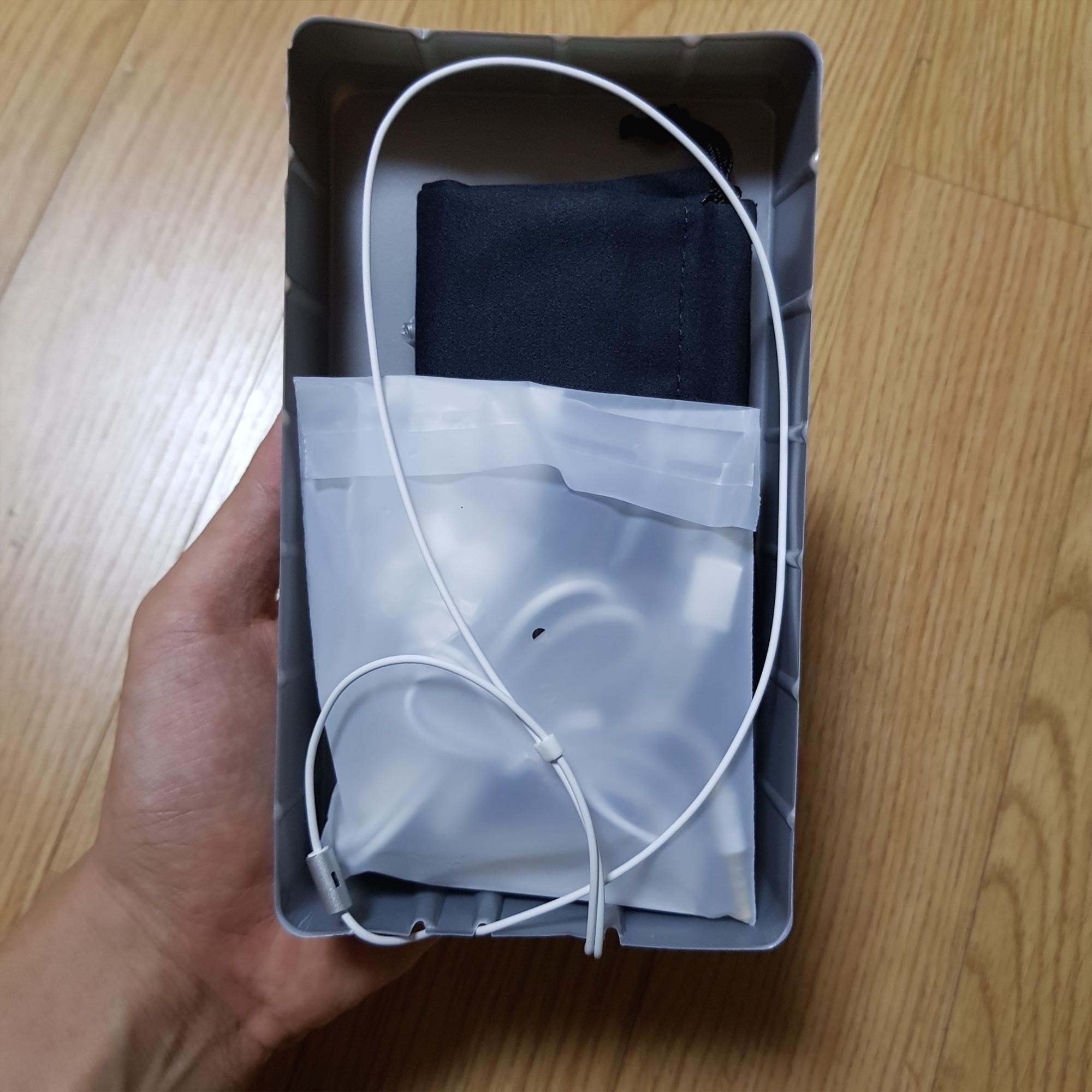 포장을 뜯으면 비닐봉지에 담겨있는 구성품과, 이어폰 본체가 보여요.