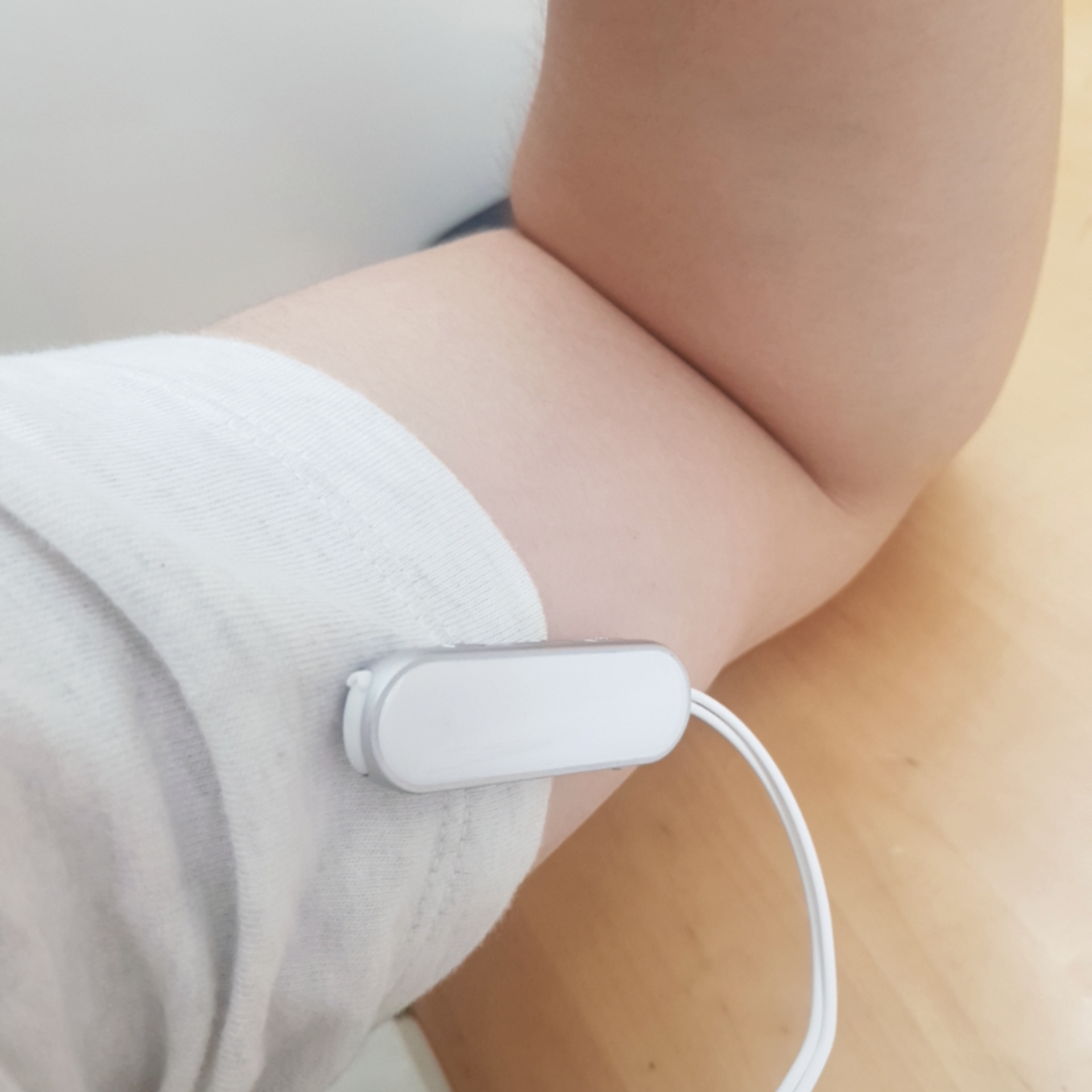 그래서 팔에다가 꼈습니다.......앉아서 쓸 때 불편한 점 꼭 참고하세요!