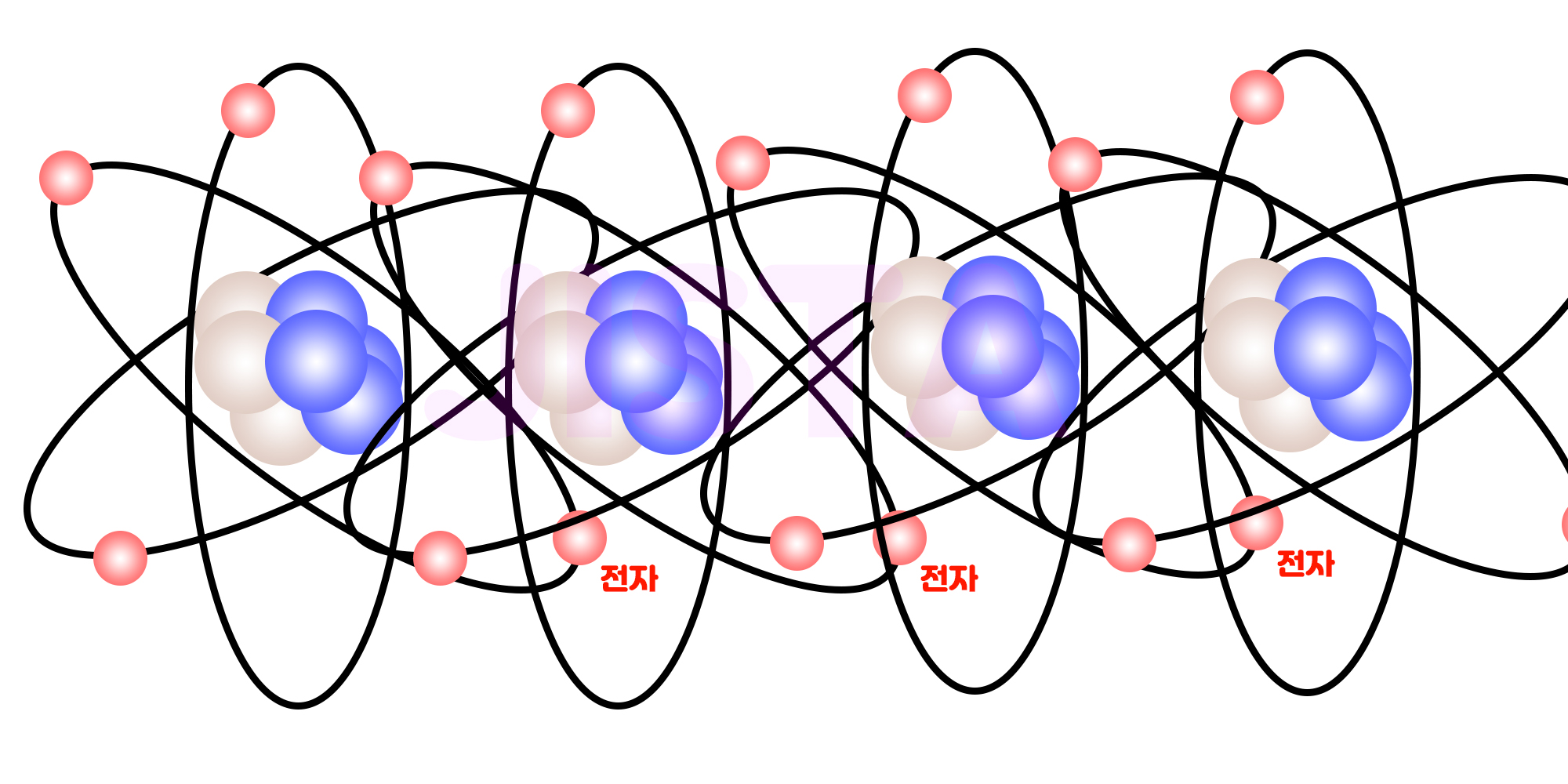 위 그림 많이 보셨죠? 막 보어모델 무슨 모델 하고 많잖아요. 거기서 양자 = 양성자, 가운데 있는 애들이구요.