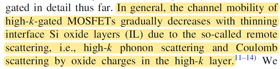 대표적으로 Phonon scattering과 Remote coulomb scattering이 자주 등장하더라구요.