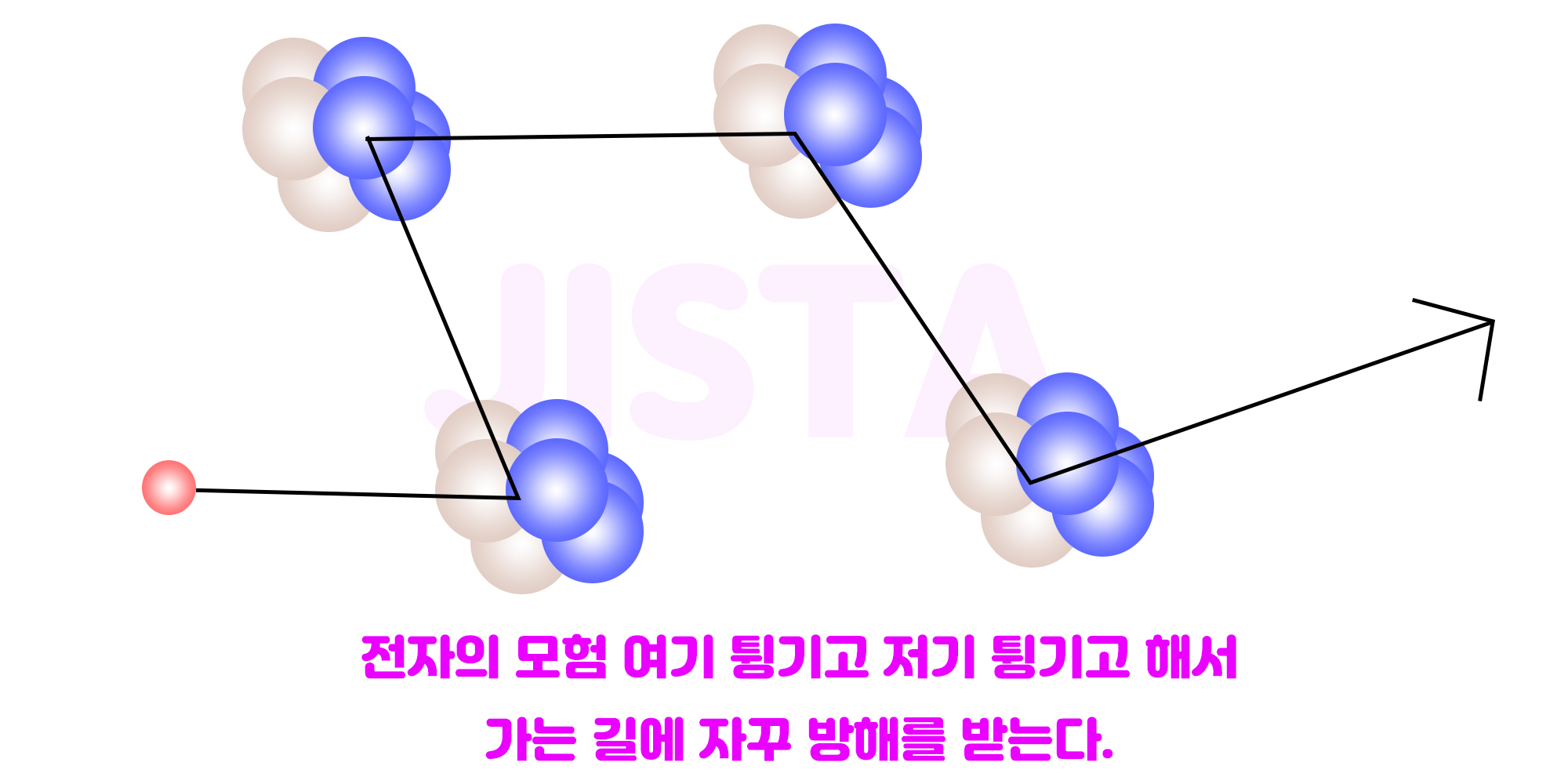 전자가 다른 원자의 영역을 침범해서 부딪히겠죠? 전자가 양자(phonon)과 부딪힙니다.