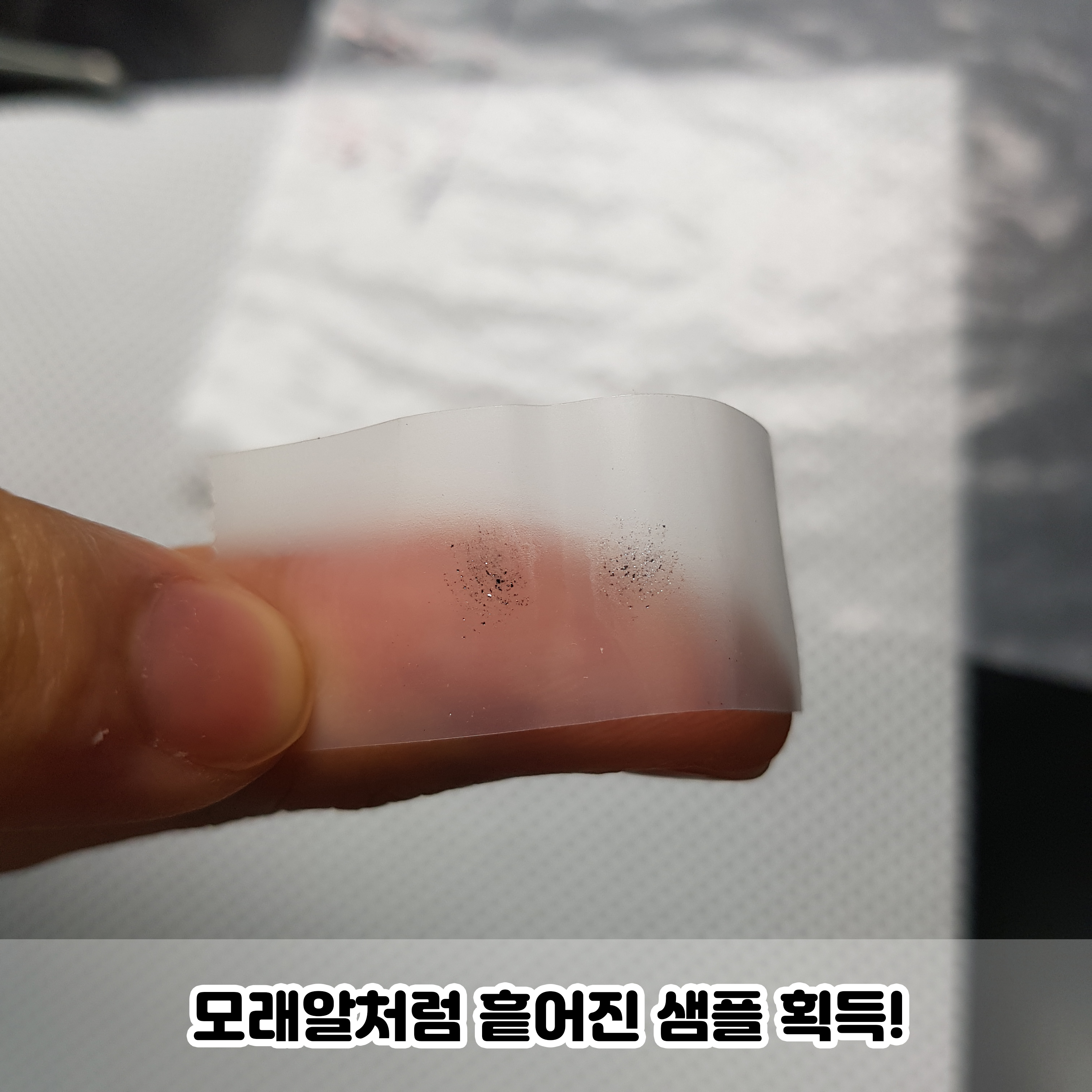 한 8~10번정도 붙였다 뗐다 하면 모래알처럼 흩어진 샘플을 얻습니다.