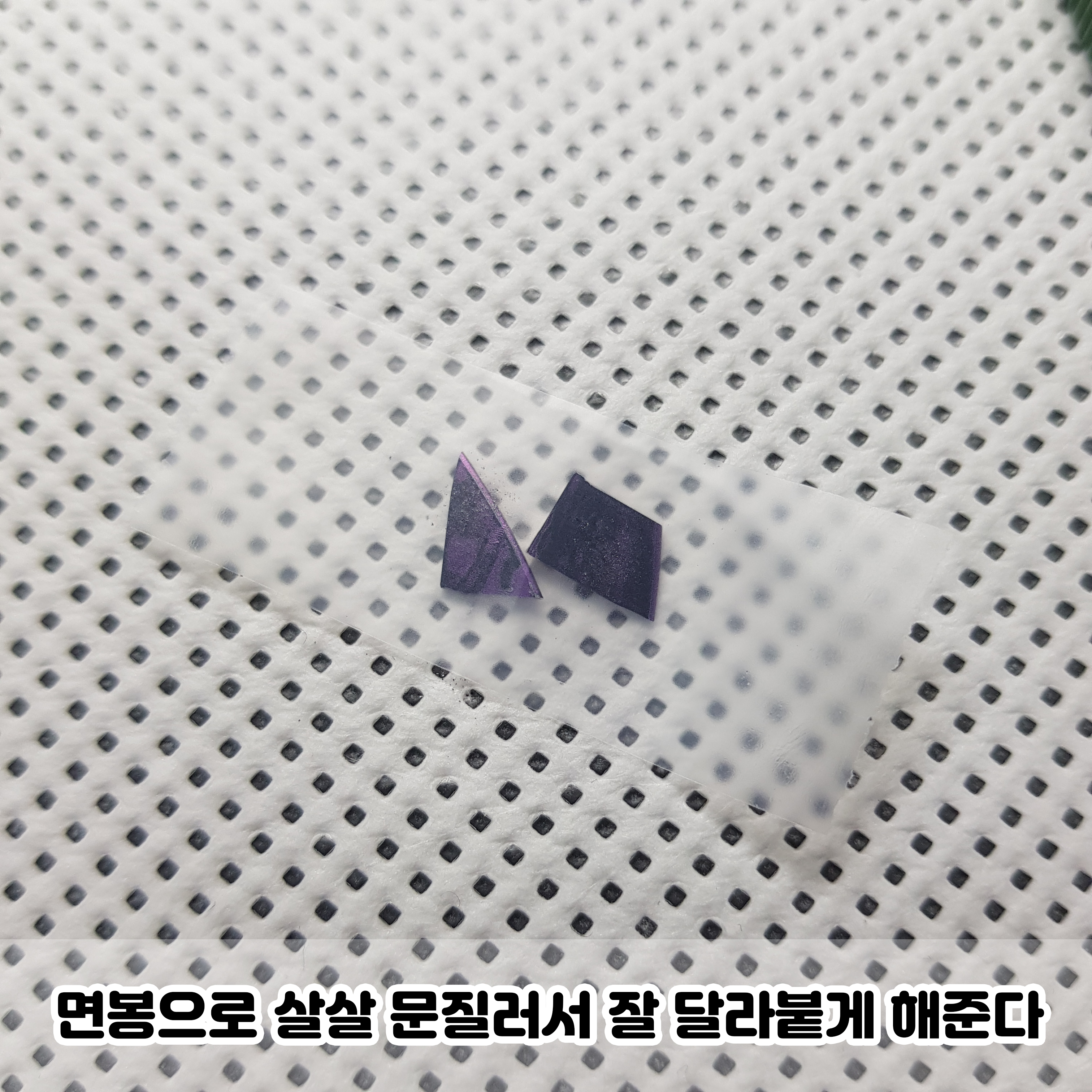 테이프에 붙였으면 면봉으로 살살 문질러주세요.