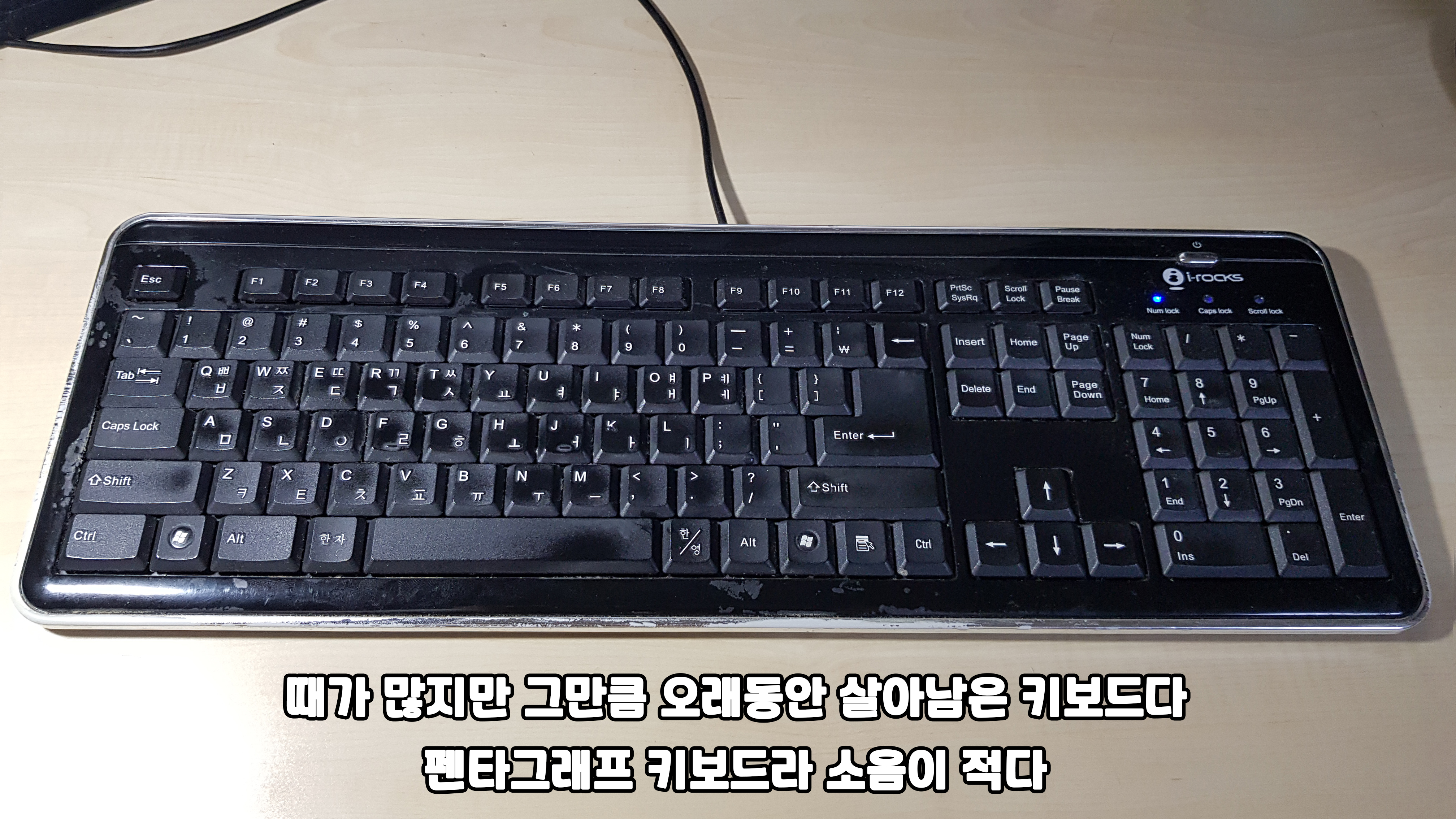 때가 정말 많이 타있죠?? 3년동안 쓰면서 청소를 잘 안했네요. 그러나 그만큼 오래오래 살아남은 키보드입니다.