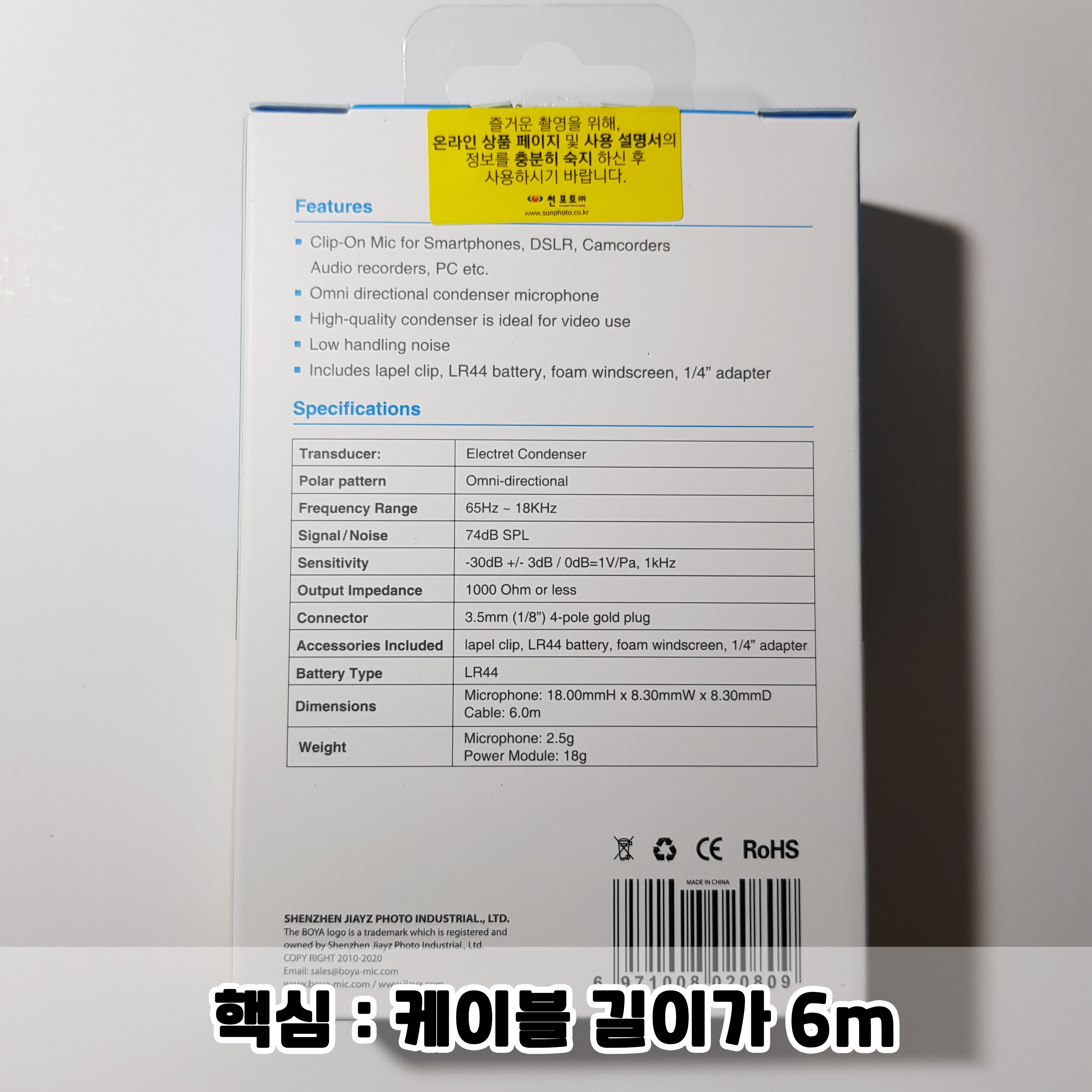 핵심만 알려드리겠습니다. 케이블 길이가 6m인 유선마이크에요...