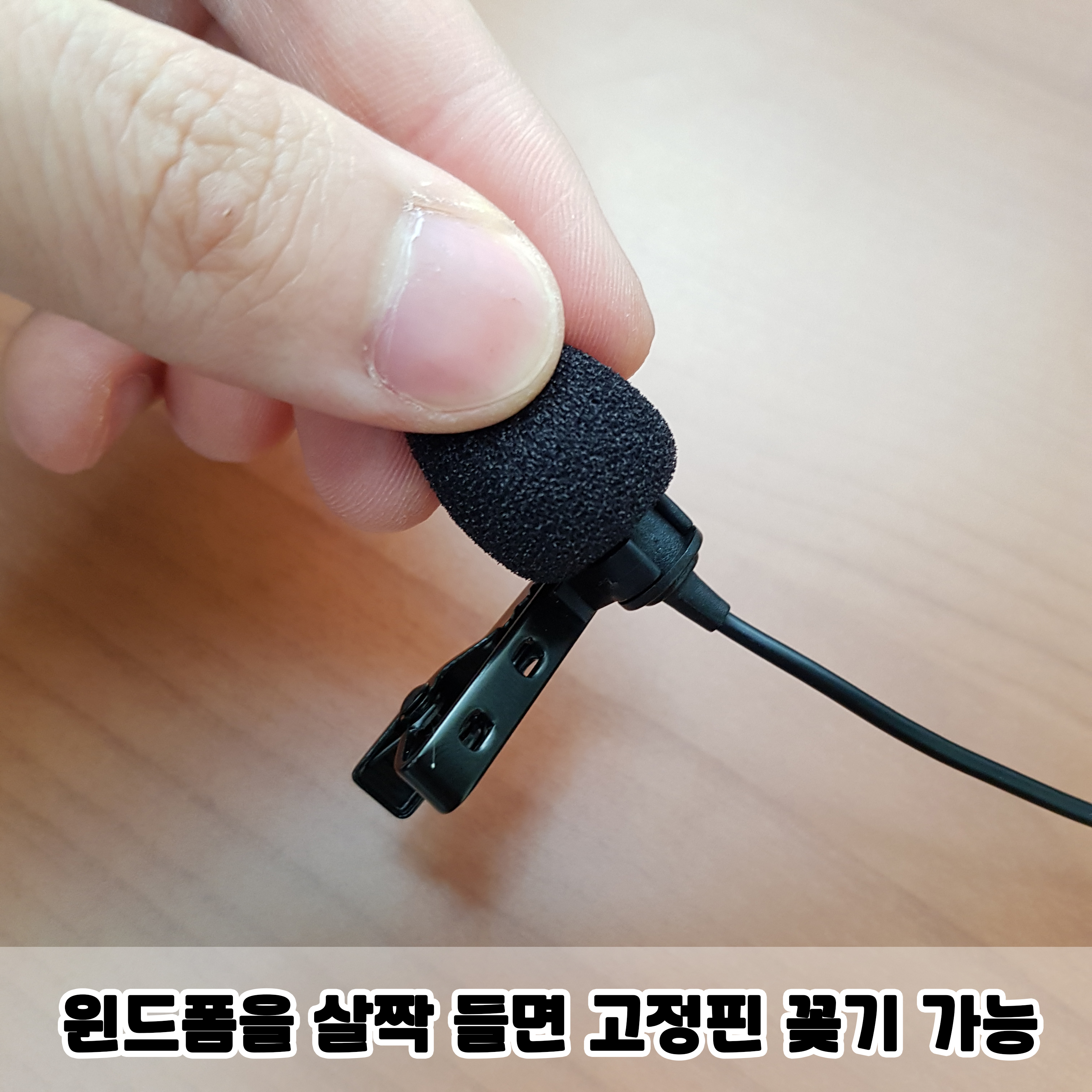 이렇게만 하면 마이크를 쓸 때 손으로 들고 써야합니다. 옷깃에 끼는게 더 편하겠죠?