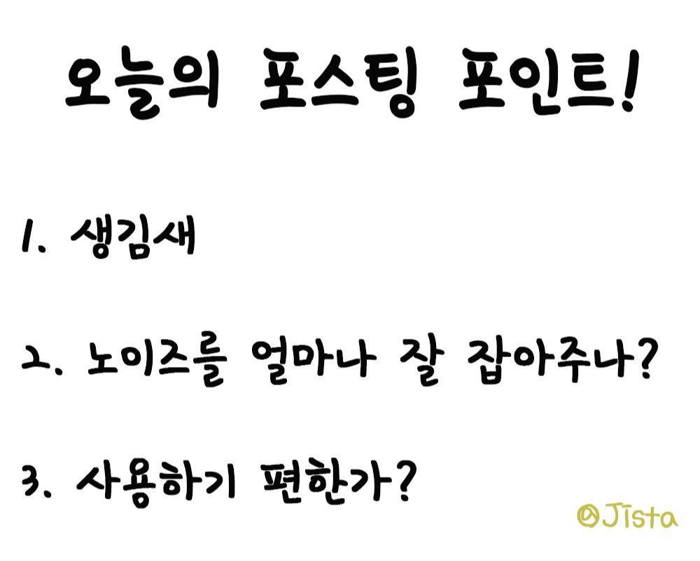 그리고 기능면에서 노이즈를 얼마나 잘 잡아주는지? 마지막으로 사용하기 편한지를 다뤄보겠습니다.