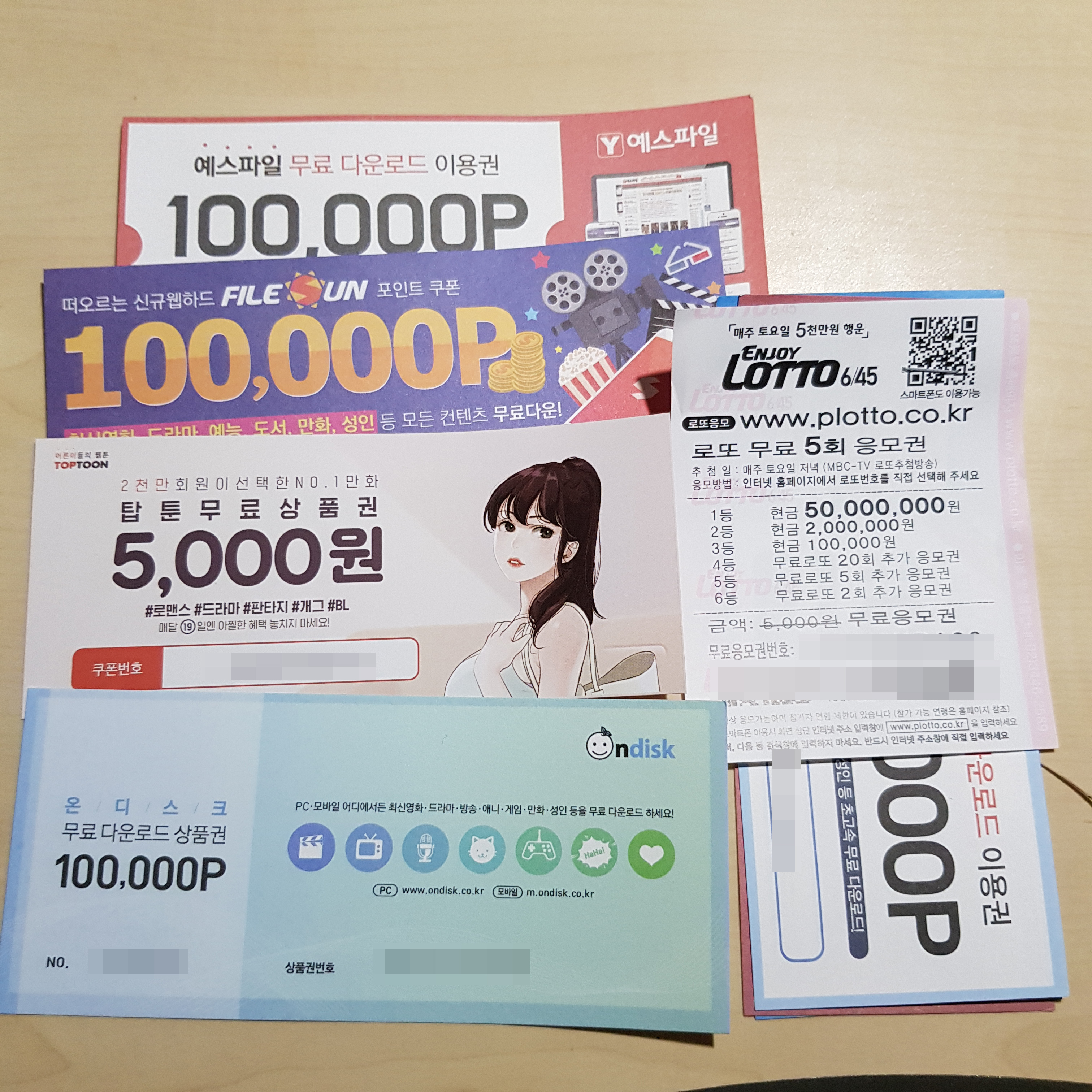 첨에 로또가 있어가지고, 와 미친 로또를 공짜로주나 기대했는데, 무료 응모권이었음.
