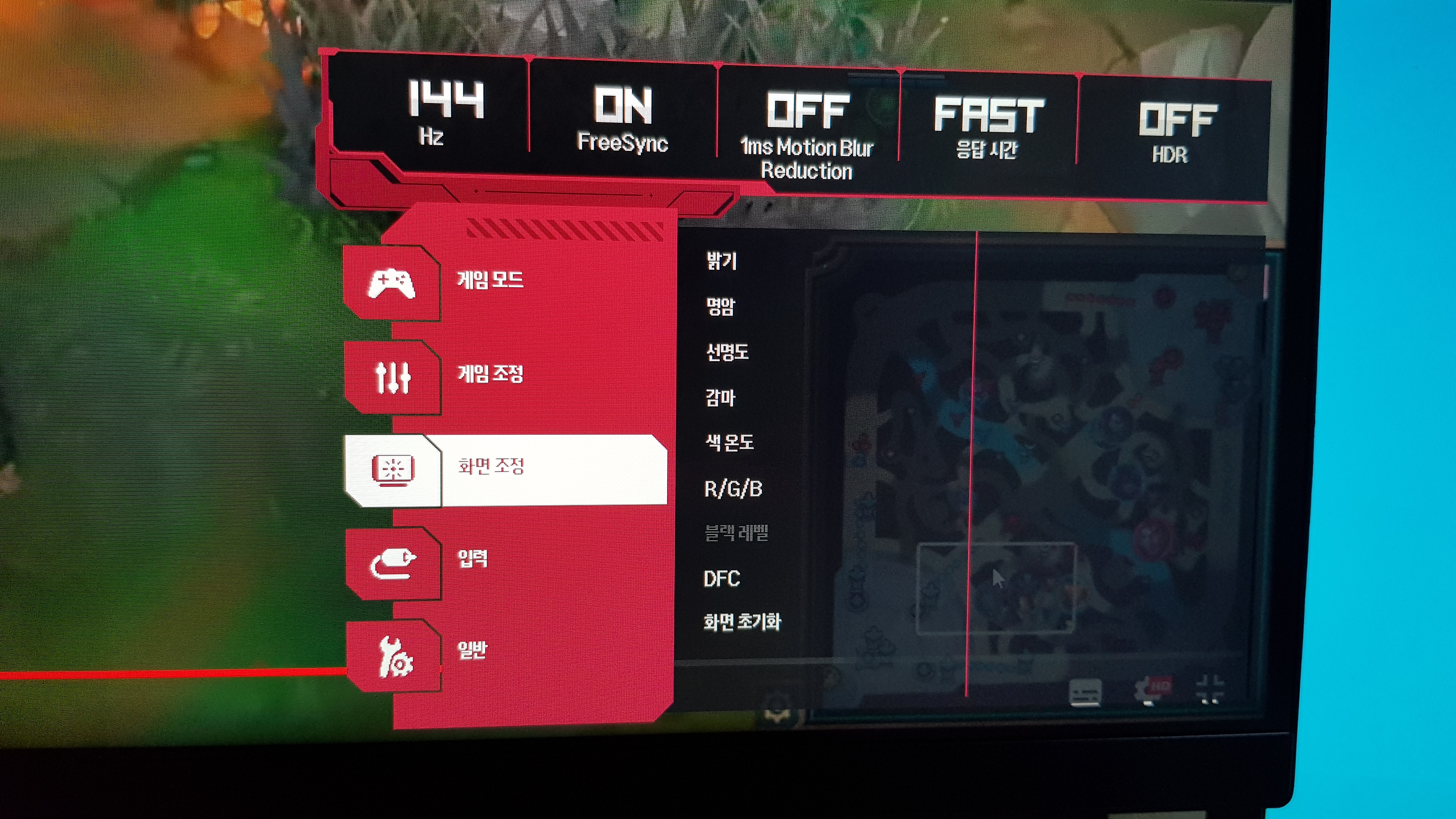 미리 설정되어있는 모드들이 눈에 안맞으면 게임조정이나 화면조정등으로 세부설정도 가능합니다.