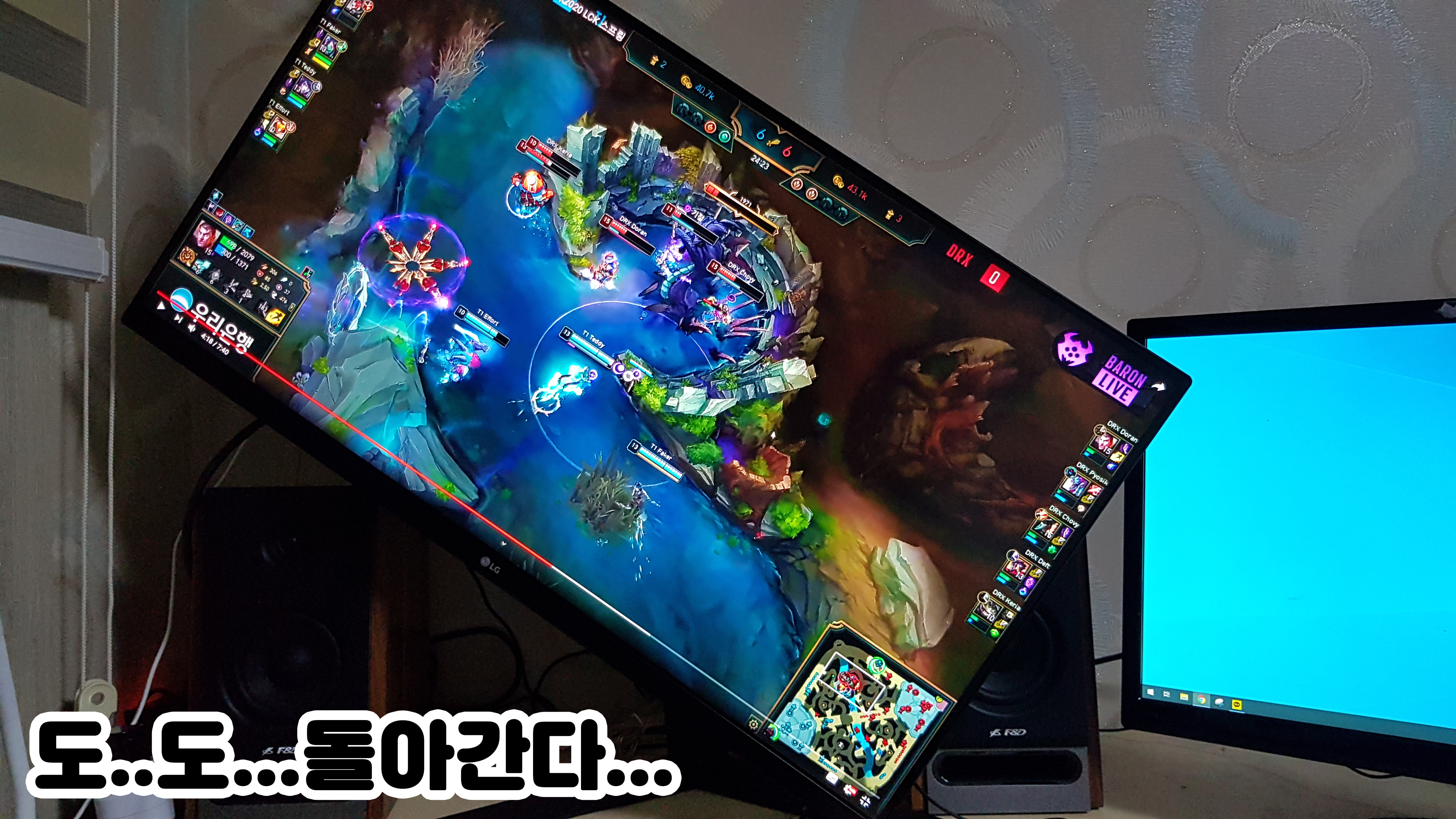 그러나 서브 모니터가 이랬다면 정말 쓸모있었을텐데, 메인 모니터를 피벗으로 하려니 게임할 때 가로로 바꿔줘야해서 불편하더라구요. 그래서 20분정도 쓰다가 다시 가로로 바꿨습니다.