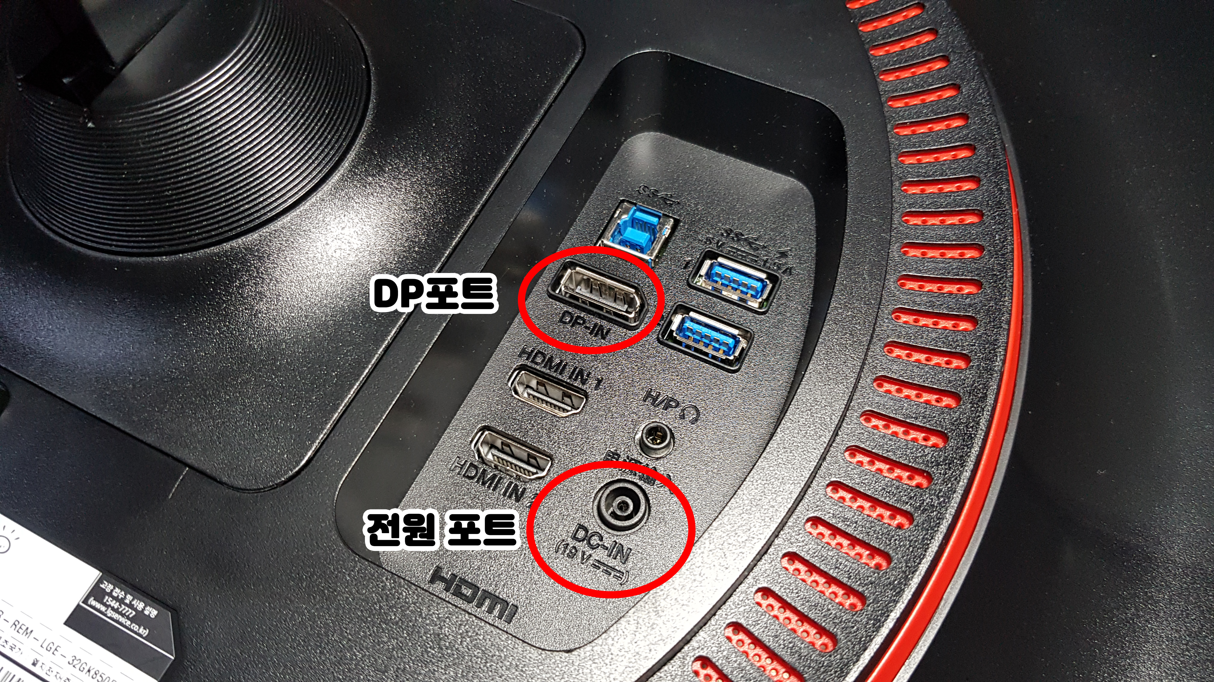 마지막으로 본체와 모니터를 연결해야하는데, 144Hz의 주사율을 표현하고 싶다면 DP포트를 꽂아주시구요.