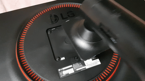 먼저 지지대를 모니터 뒷부분에 철컥 소리나도록 껴주시면 돼요.