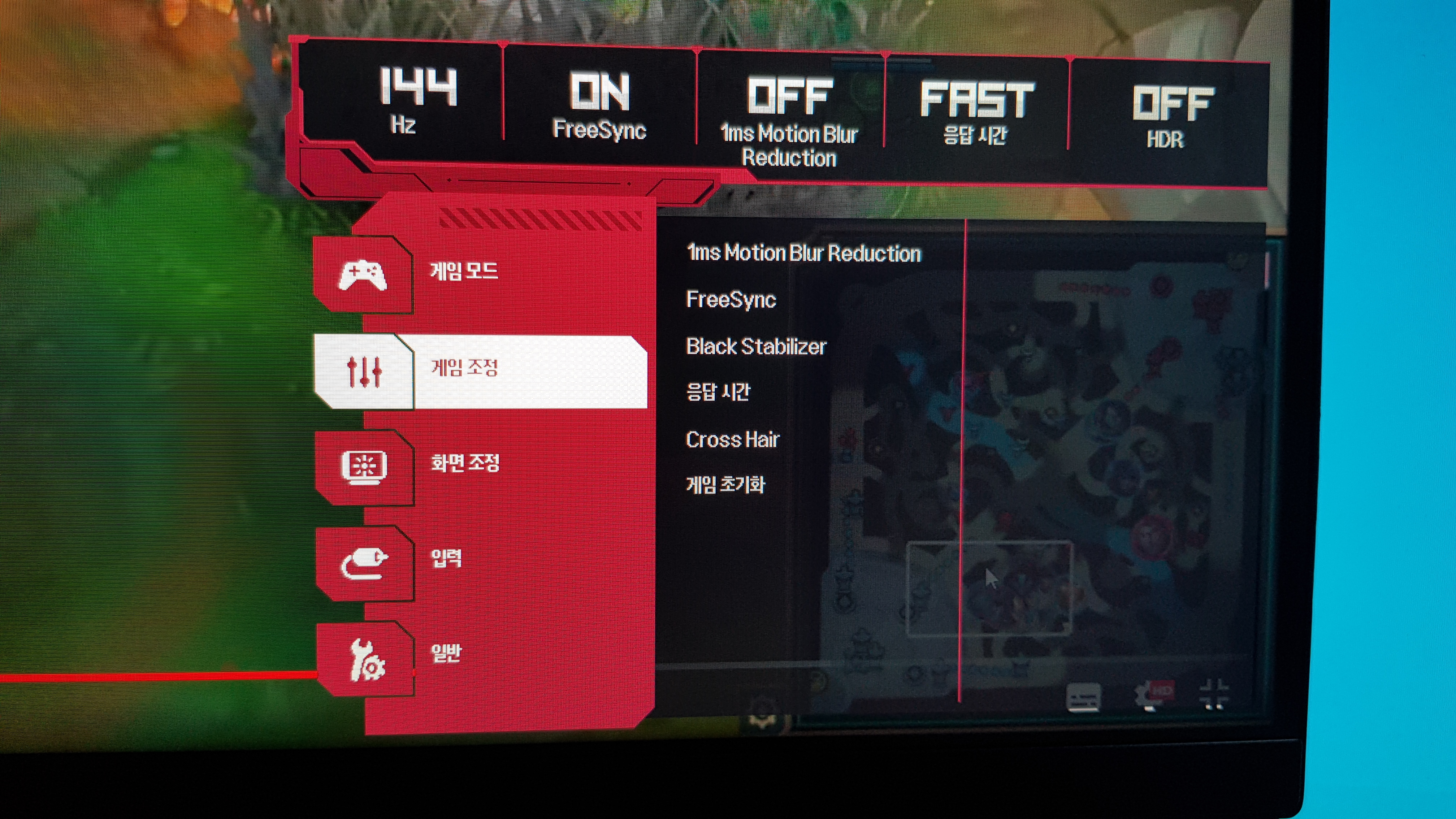 FPS 게임할 때 꼭 필요한 Free Sync나 Cross Hair, 응답시간을 1ms로 줄여주는 기능도 있어서 세부적으로 세팅이 가능해요.