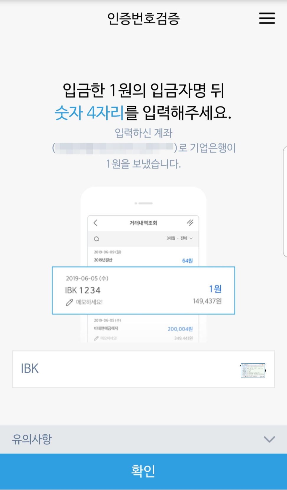 고객정보를 입력한 뒤에는 신분증 사진을 찍어서 본인인증을 또 한번 완료합니다. 계좌를 만들때에는 신분증이 꼭 필요하거든요! 그 뒤 타행으로 IBK기업은행에서 1원을 입금해요. 입금자명은 보통 IBK 0000인데, 뒤 네자리 숫자를 입력함으로써 인증이 됩니다.