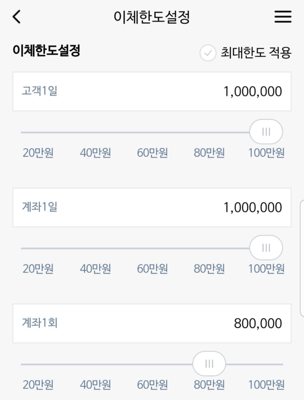진짜 한도제한이 안걸려있는지 확인