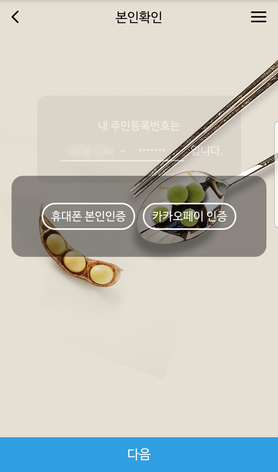 이제 막 이름 적고, 주민등록번호 적고 휴대폰 본인인증하는 단계가 있습니다.