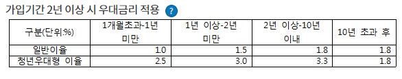 만약 기존 청약통장에서 전환할경우 기존 납입기간을 인정해주기때문에 처음부터 새로 납입하는 금액에 대해 높은 우대이율을 받을 수 있어요.