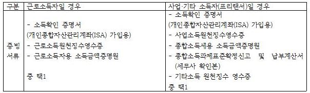 - 소득 확인 서류