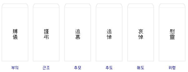 대표적으로 부의, 애도, 추모, 위령, 근조, 추도 총 6개의 단어가 있습니다.
