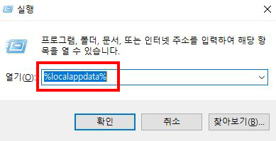 다시 실행앱을 실행해주세요. 이번에는 %localappdata%라는 글씨를 쳐준 뒤 확인을 해줍니다.