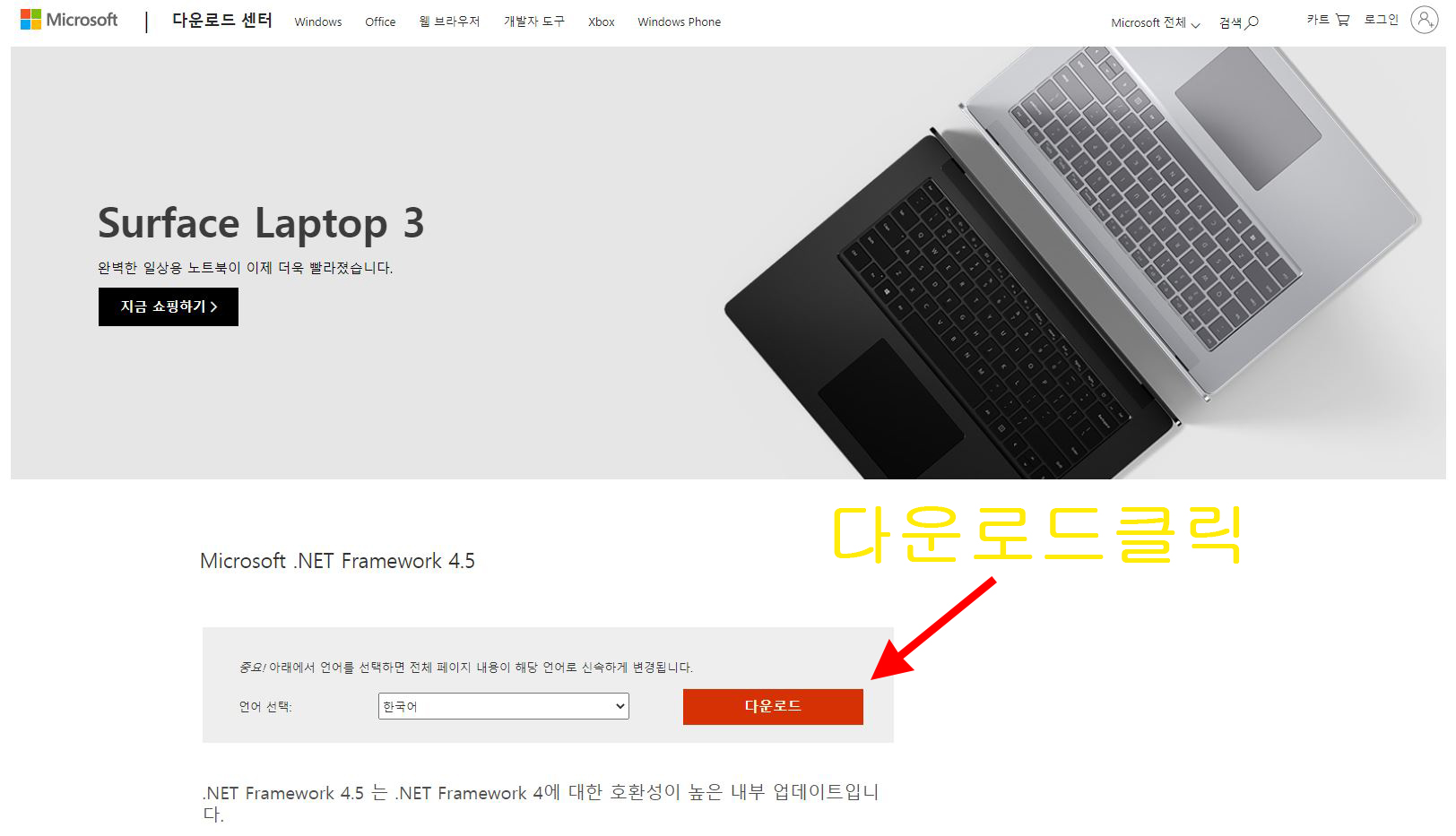 위 마이크로소프트 홈페이지에 들어가주세요. 넷프레임 4.5버젼을 설치하는 사이트입니다.