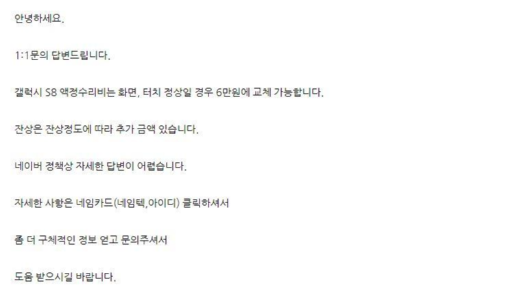 삼성 서비스센터 정식 액정 수리비