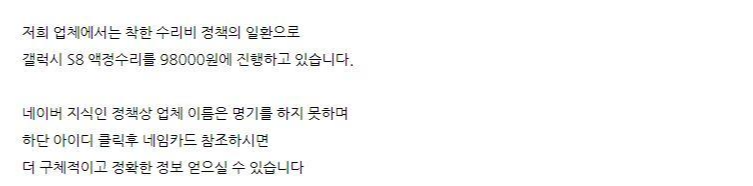 서울 반포지역에 있는 한 업체는 액정수리비가 98000원입니다. 서울은 경기도보다 훨씬 비싸죠...?너무 비싼 것 같아 좀 더 조사를 진행해봤습니다.