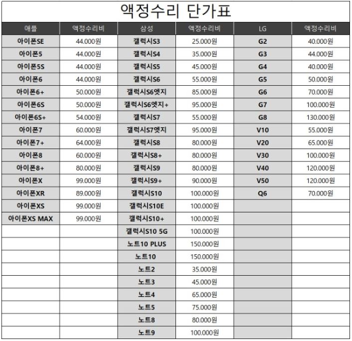 사설업체의 액정 수리비