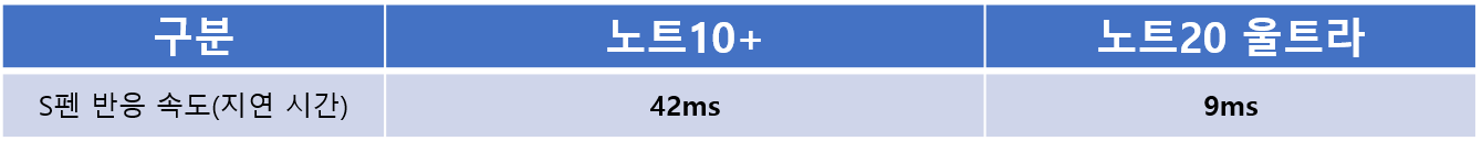 S펜의 경우 반응속도는 42ms에서 9ms로 79%나 줄었습니다. 실제 필기할 때 노트에 적는 필기감이 느껴진다고 하네요. S펜을 활용한 제스쳐도 있다하지만, 실제로 사용할지는 미지수입니다. 잘 안쓸 것 같아요.