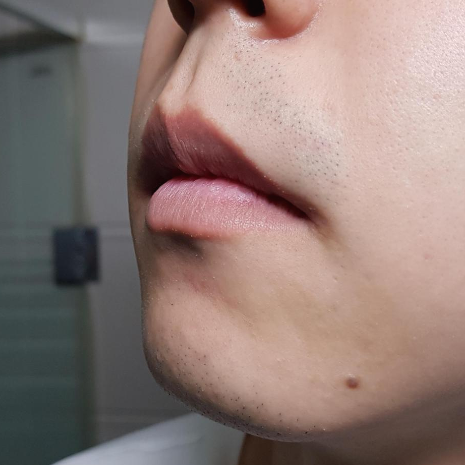 다만 엄청 초근접으로 피부 들어서 보면 피부속에 수염이 남아있습니다. 수염자국까지는 없애지 못해요. 날 면도기만큼 밀지는 않으니깐요. 그러나 데일리로 깔끔한 이미지를 주기엔 충분한 절삭력입니다.