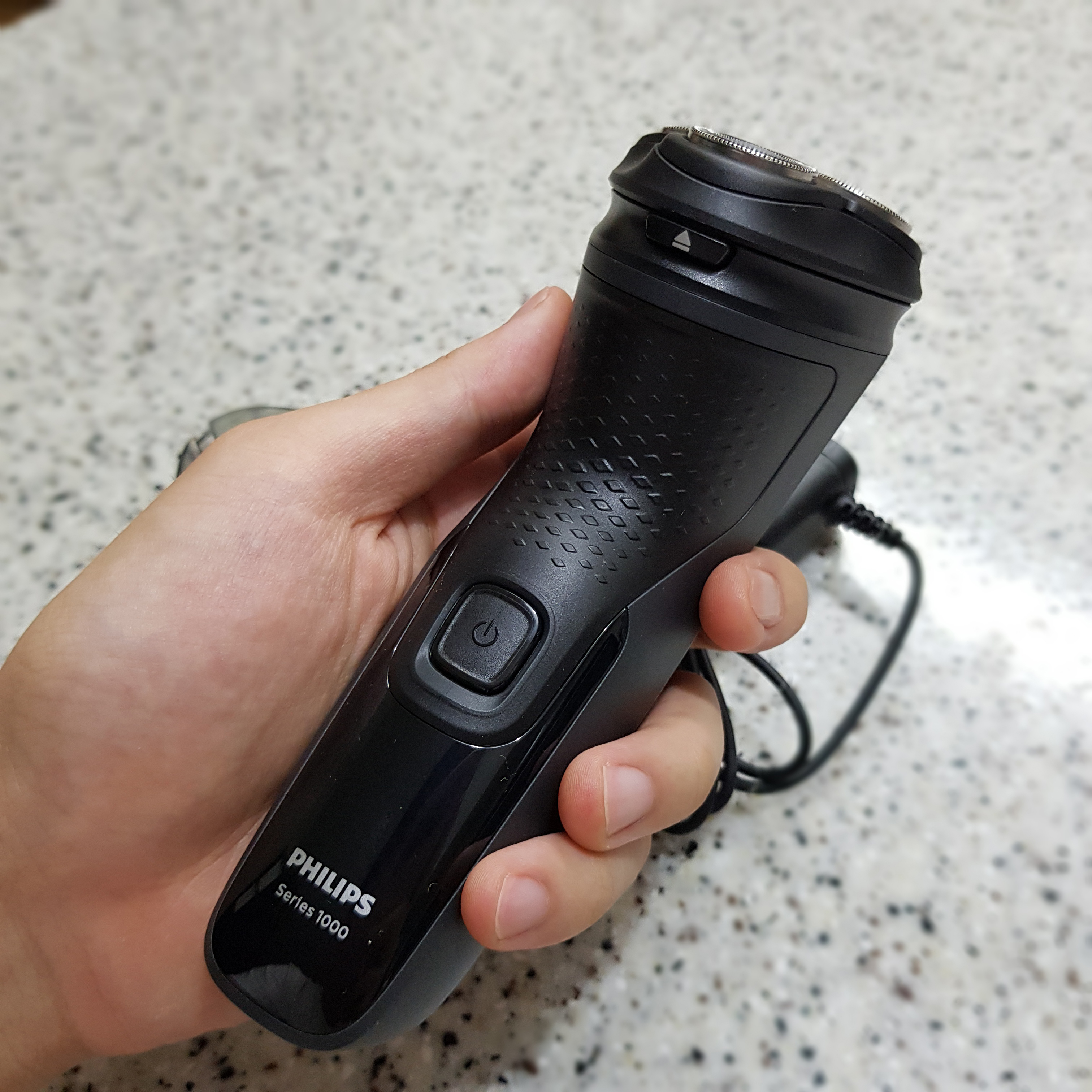 브라운은 일자형이었잖아요. 필립스는 삼발이 모양의 전기면도기입니다. 특징이 딱 나뉘어서 구분하기가 쉬워요. 삼발이마냥 면도날망이 나뉘어있어서 윤곽부분 면도가 더 매끄럽습니다. 입체적이랄까?