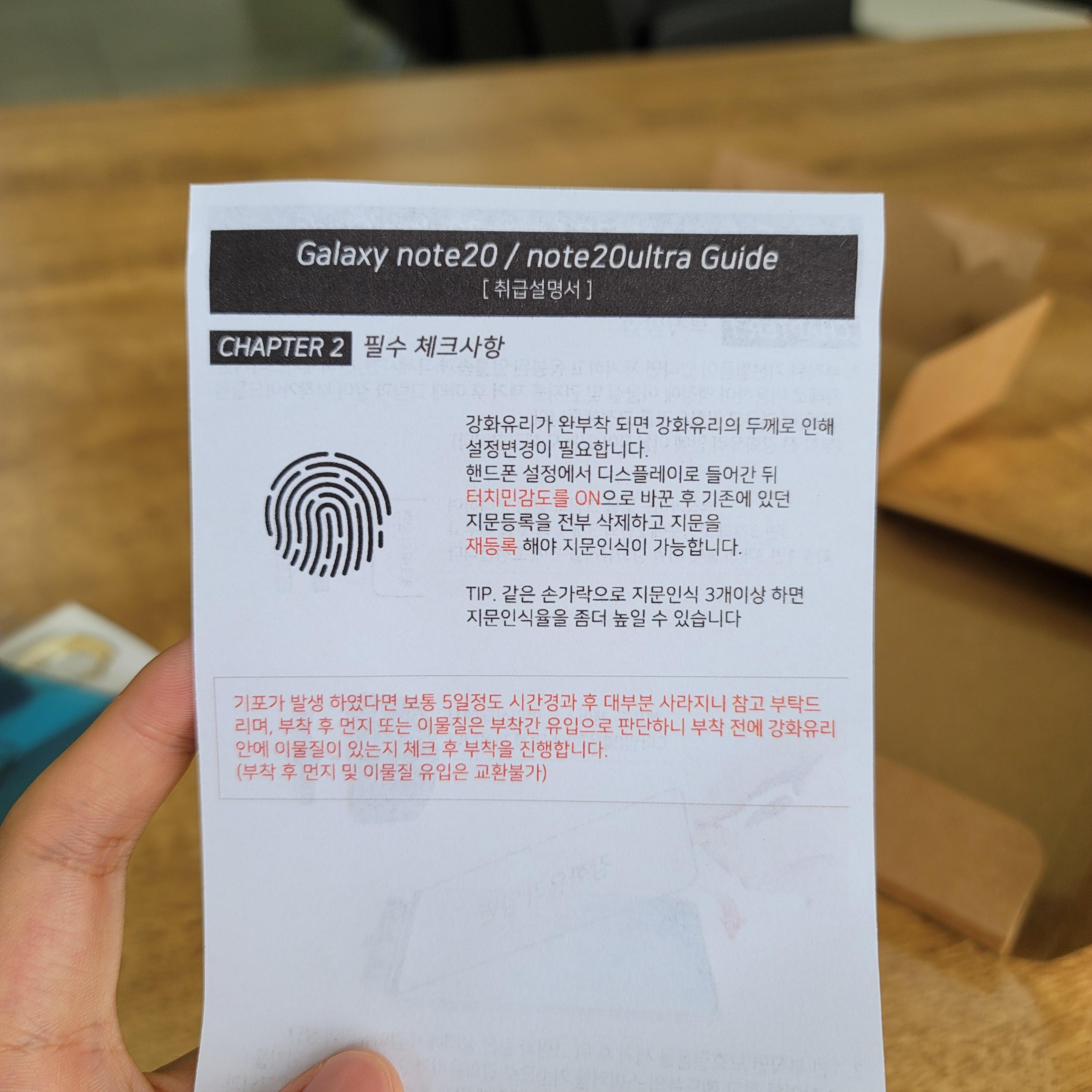 터치감에서 불편함 전혀 못느꼈어요. 지문인식도 원래 껴져있던 삼성필름과 같다고 느꼈구요.