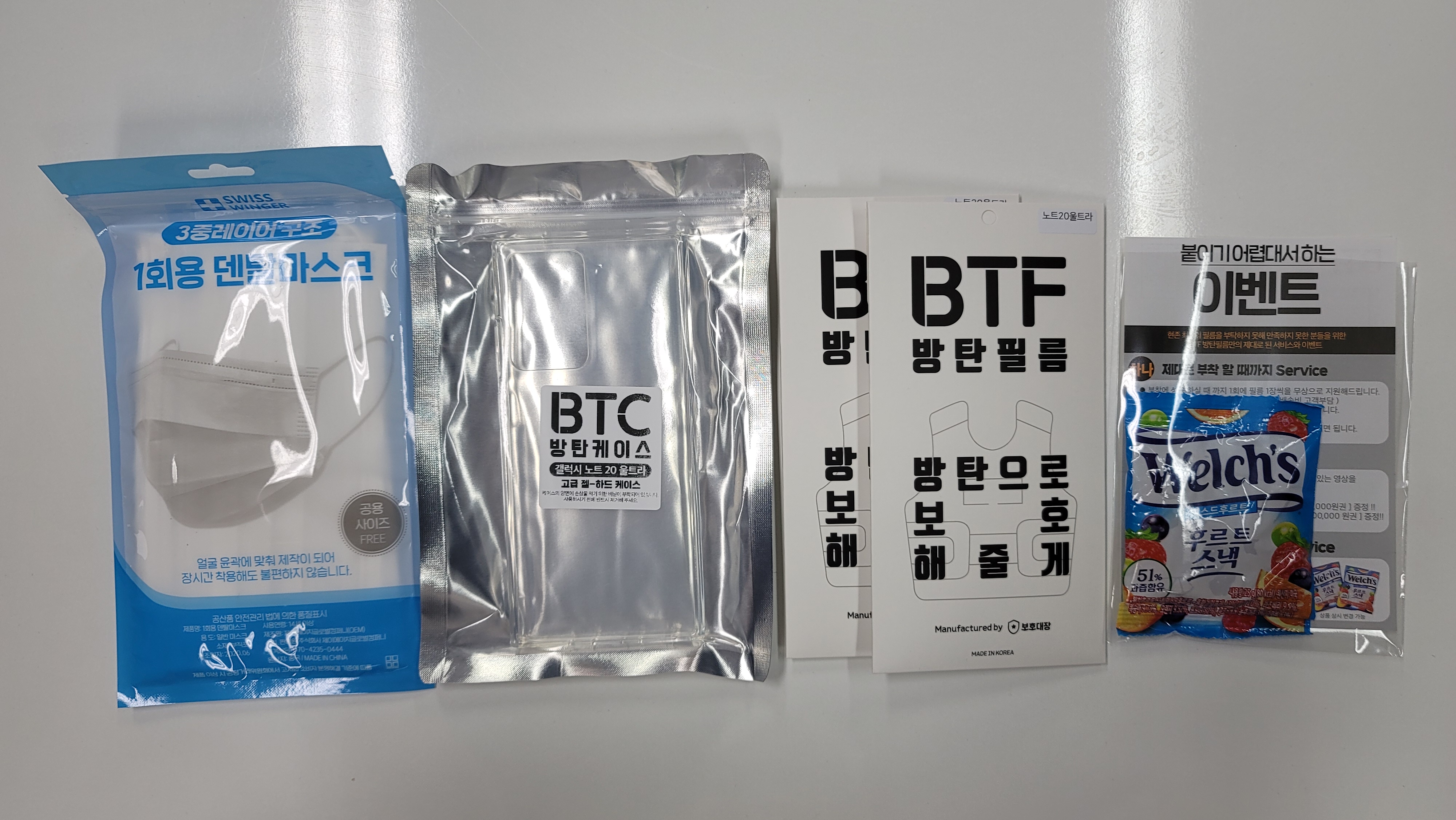 일단 성장하는 브랜드이기에 진짜 서비스를 많이줍니다. 덴탈마스크랑 케이스, 방탄필름, 젤리까지 넣어주더라구요 ㅋㅋㅋㅋ