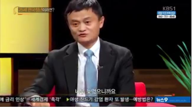 예전에 페북에서 한번 본 적이 있다. 마윈. 난 마윈의 성이 알리바바인 줄 알았다. 알고보니 회사였네. 아무튼 한국 공영방송에 한번 나와서 한국 청년들에게 조언을 했다고 한다.