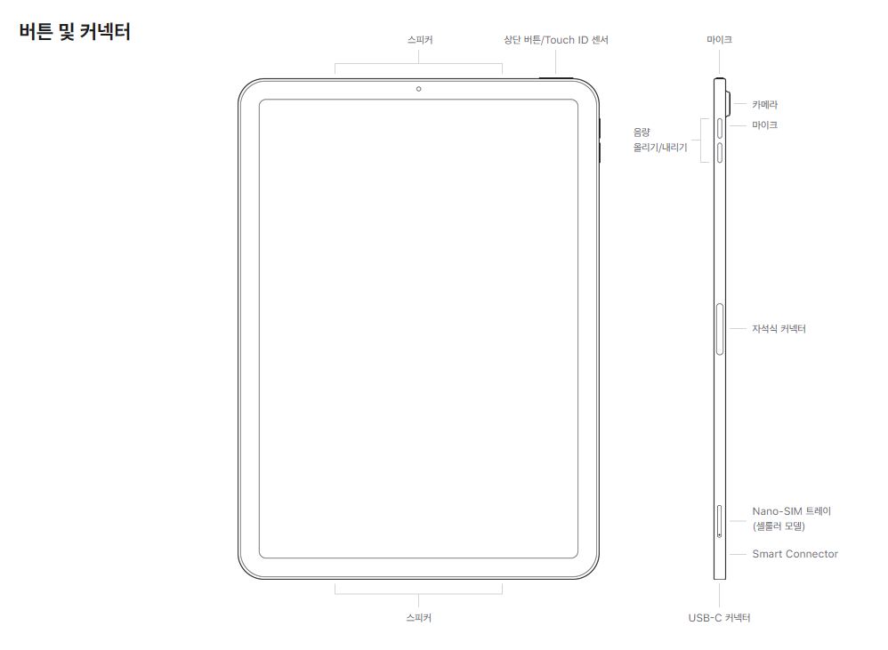 게다가 화면은 10.9인치로 좀 더 커지고 홈버튼도 사라졌어요. 아마 이 점에서 에어4를 무조건 사야겠다 싶은 분들 계실겁니다. 화면이 엄청 깨끗해지고 커진 느낌이거든요.