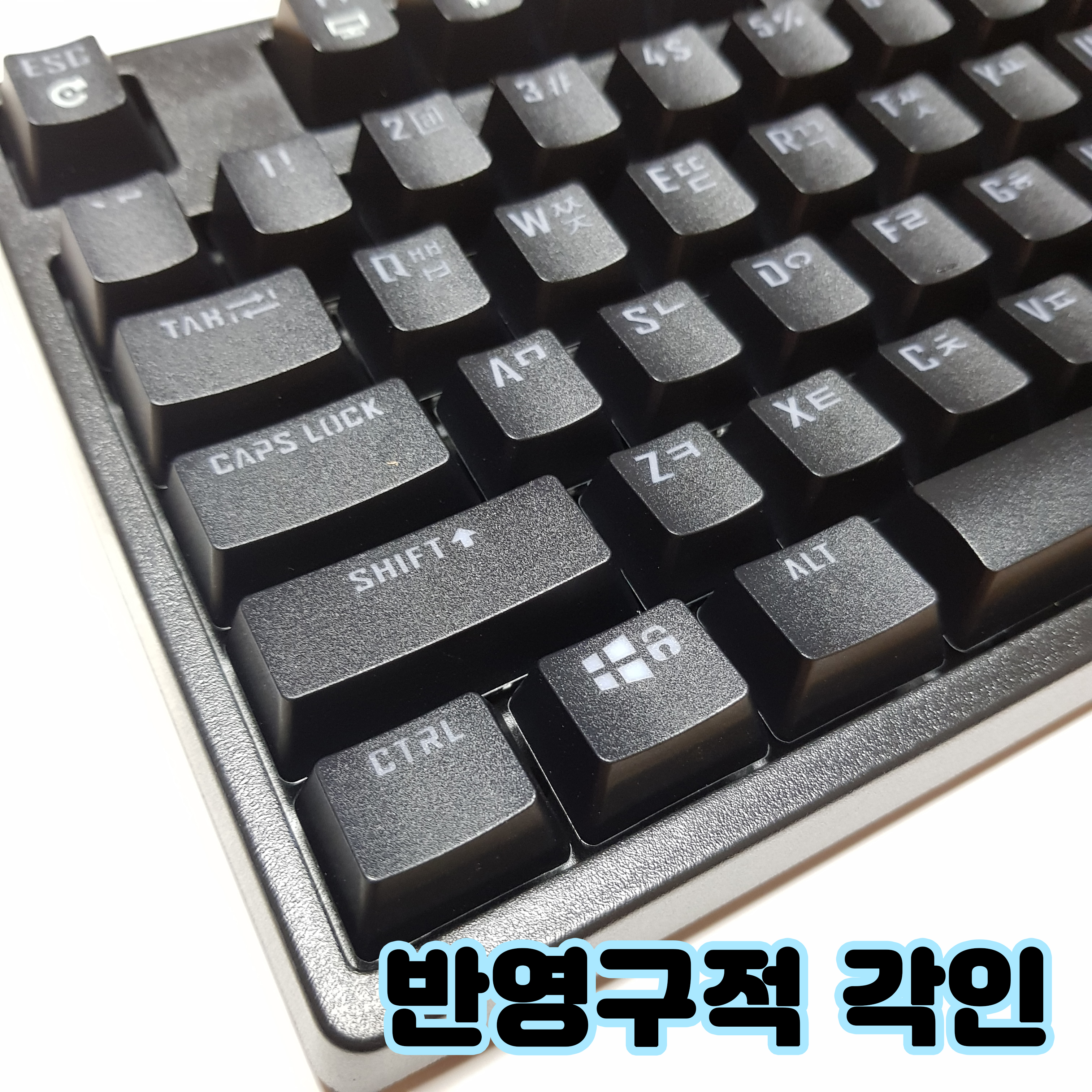 자판은 한영 ABS 이중사출키캡으로 각인이 새겨져있어요. 프린트가 아니라 지워질 일 없습니다. 문신새긴거라 보심 돼요. 반영구적으로 사용할 수 있고, 여기서 라이트도 나옴 ㅎㅎ