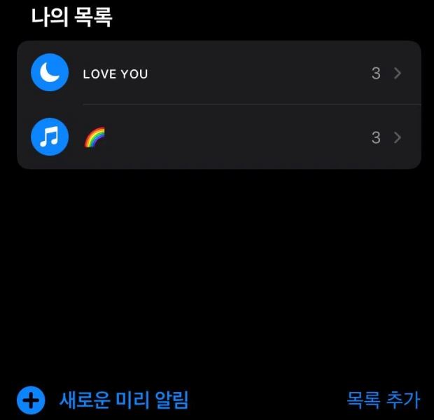 목록을 선택해서 아래에 있는 새로운 미리 알림버튼을 누르시면 원하는 텍스트 알림을 추가할 수 있습니다.