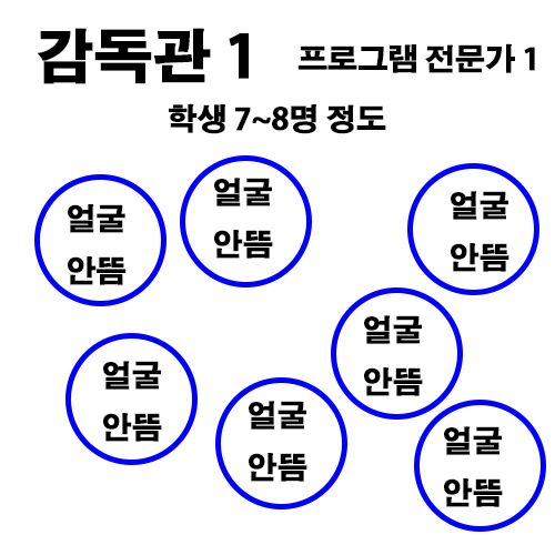 들어가면 Zoom 앱마냥 내 얼굴이 뜨는데, 다른 사람 얼굴과 이름은 절대 안뜬다. 감독관 얼굴도 안뜬다. 오직 감독관만 나와 다른 사람의 카메라를 볼 수 있다. 다만 다른 사람이 말하는 건 전부 들을 수 있다. 한 조당 학생은 7~8명정도인듯?