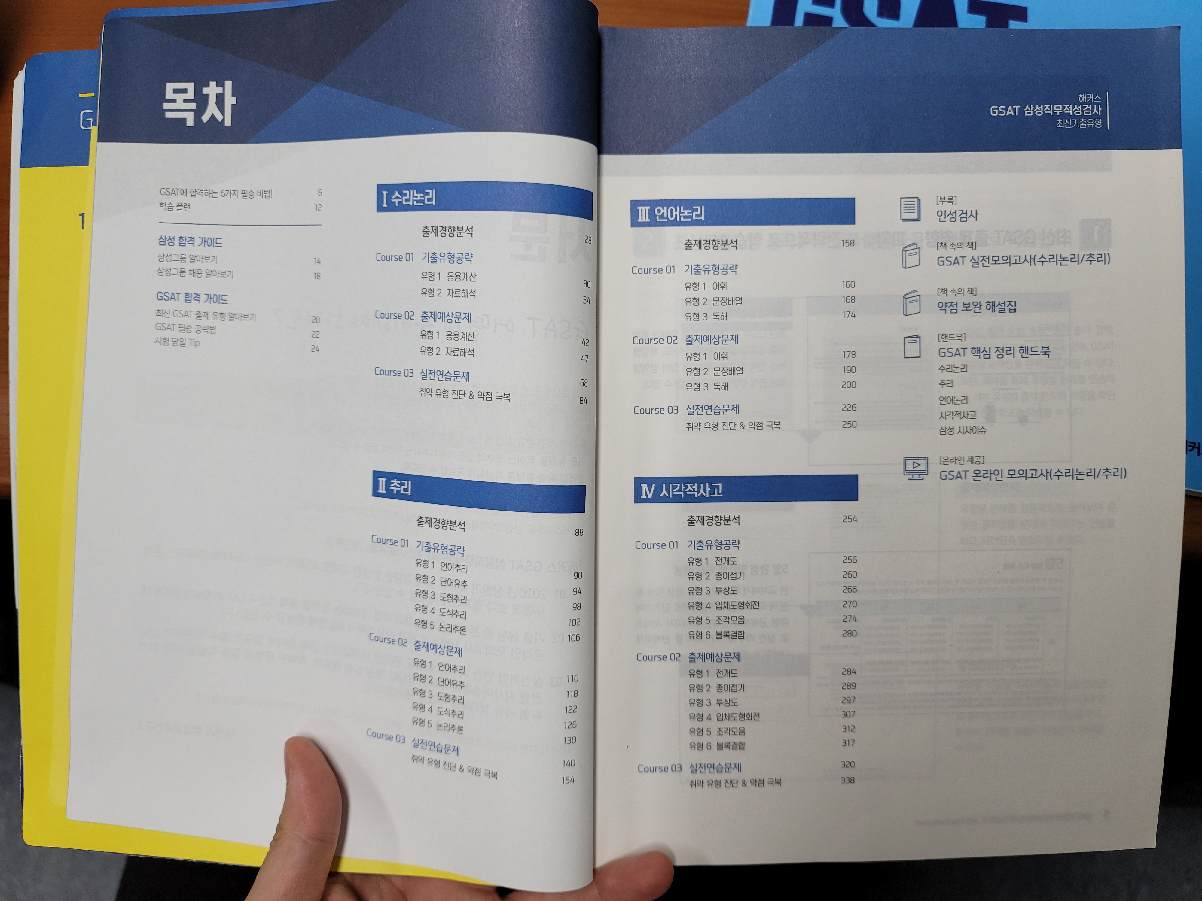 하지만 매년 반복되는 유형의 경우 문제집에서도 매년 그대로 나오는 경우가 있다. 2018년꺼랑 2020년꺼 비교해봤더니 50%는 비슷해...이 점이 아쉽다. 게다가 현재는 진행되지 않는 언어논리와 시각적사고가 문제집에 그대로 있다. 문제수도 적다.
