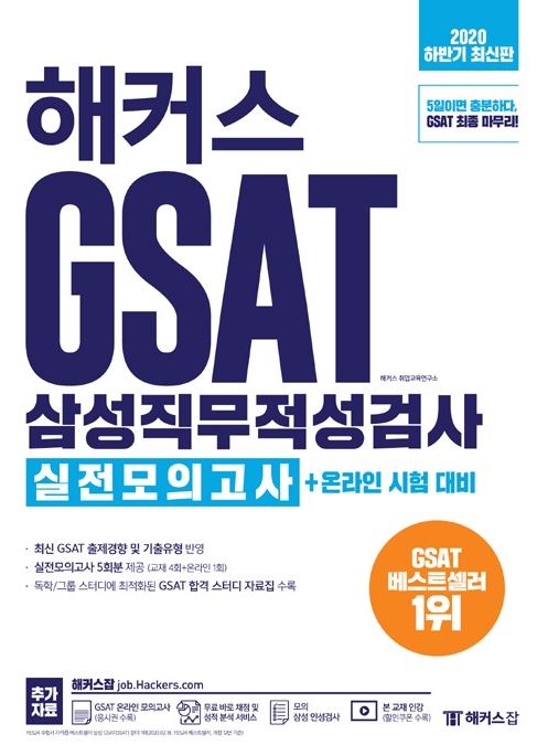 학부때는 이거 한권만 6일만에 다 풀고 붙었다. 해커스 GSAT 문제집은 문제 난이도도 실전이랑 되게 비슷하게 나오고, 초심자의 경우 문제 유형을 하나하나 익힐 수 있기 때문에 괜찮다. 그리고 최신 문제 유형도 반영된다.
